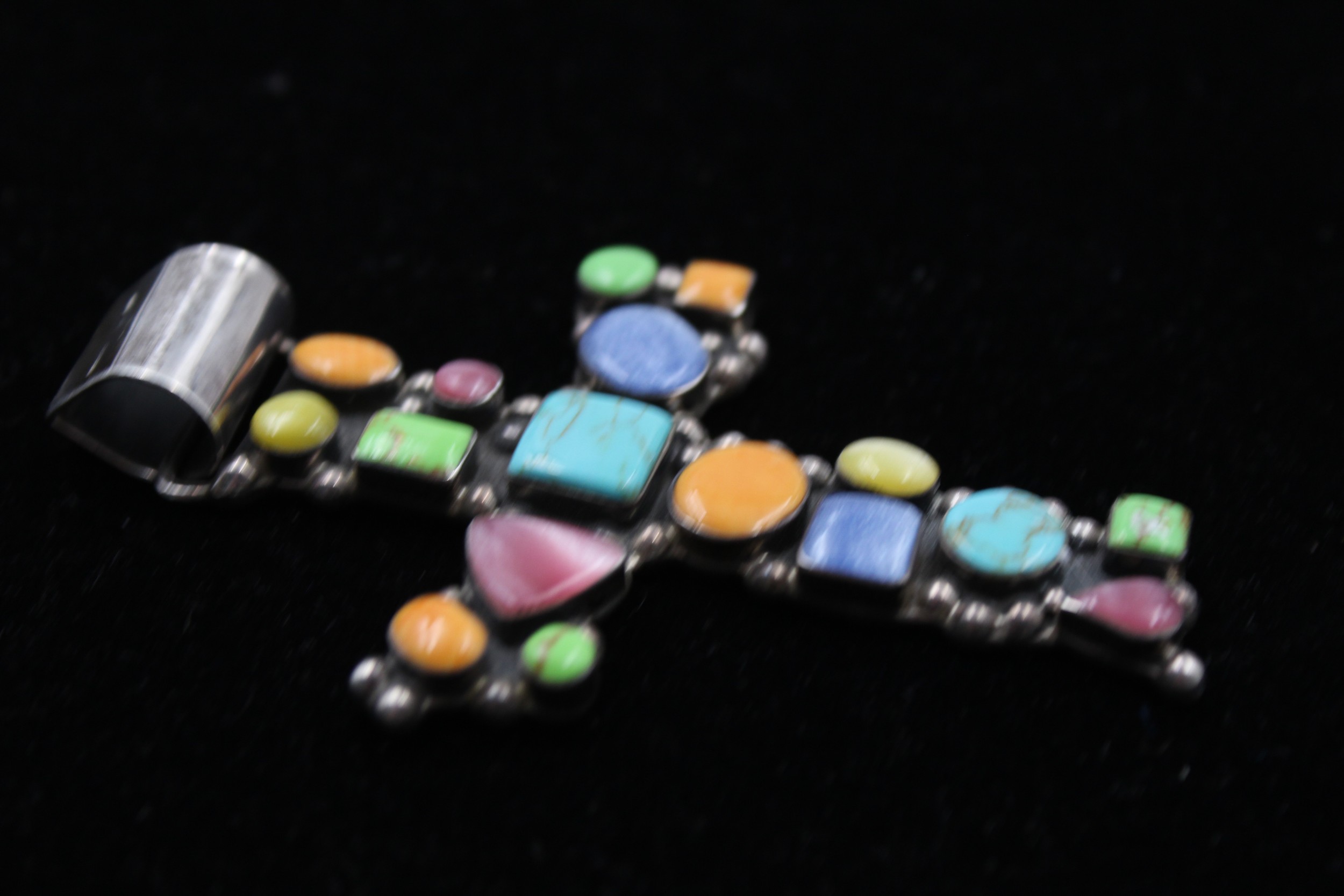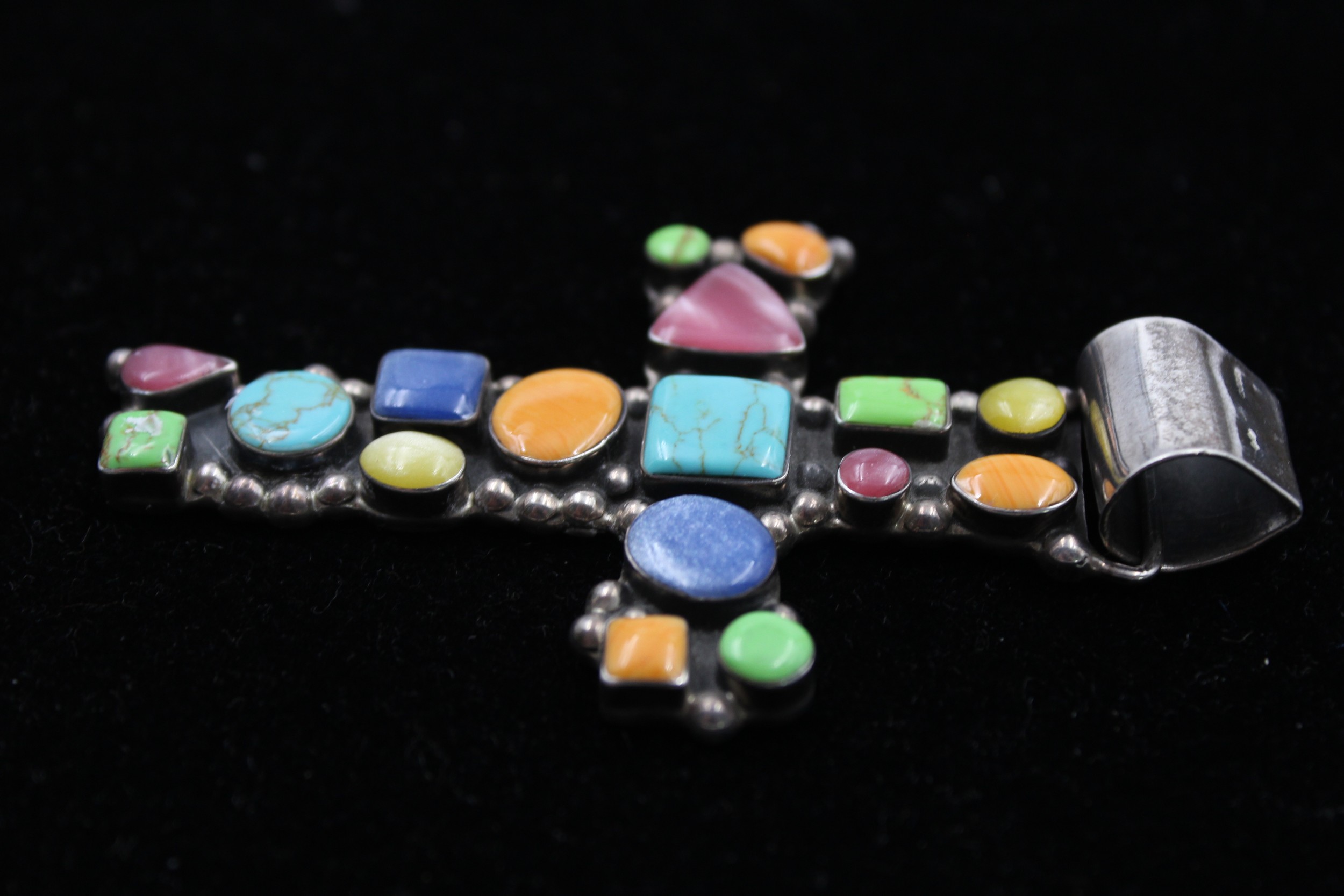 Vintage .925 Sterling Silver Statement GEMSTONE CROSS PENDANT (41g)