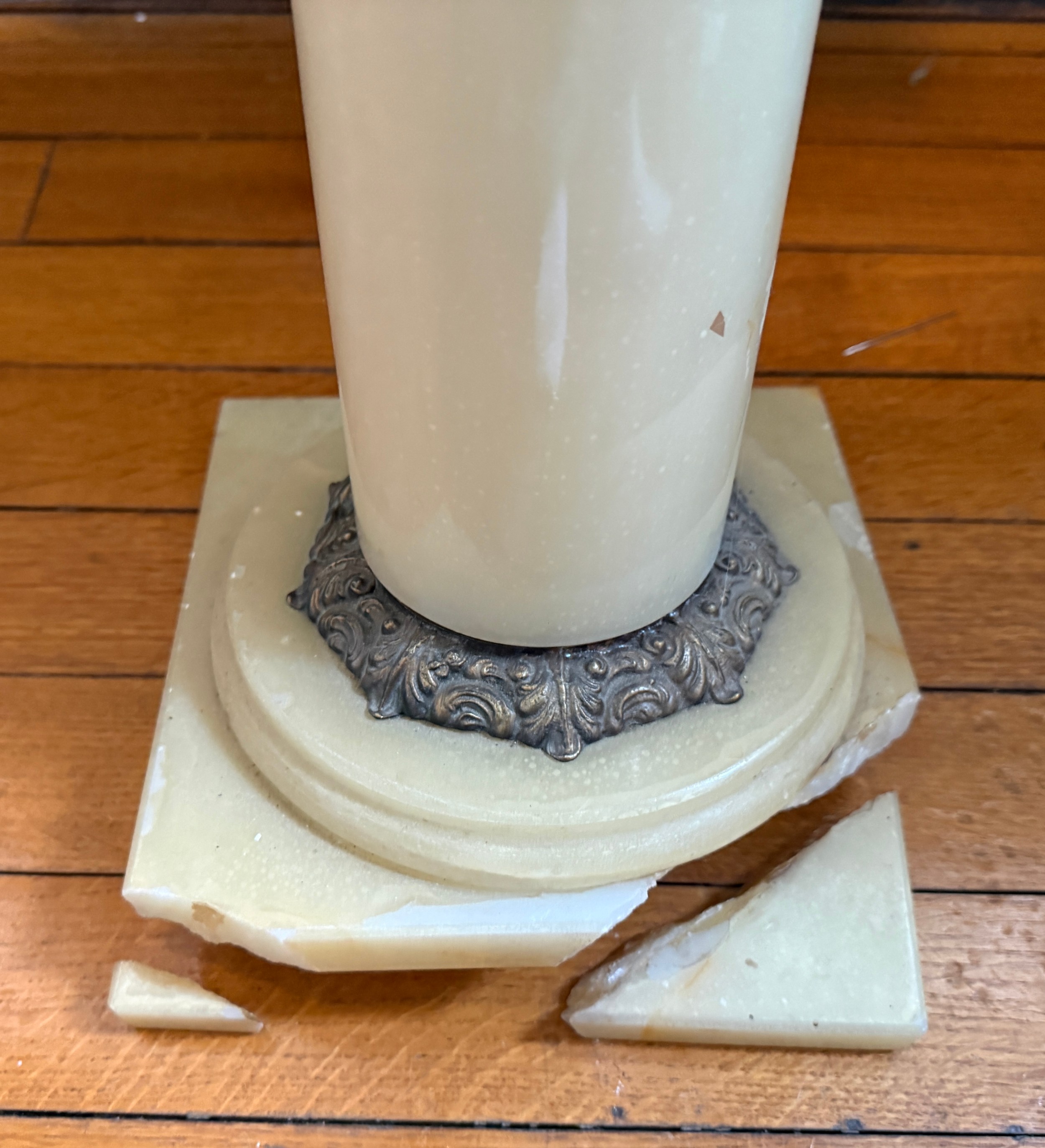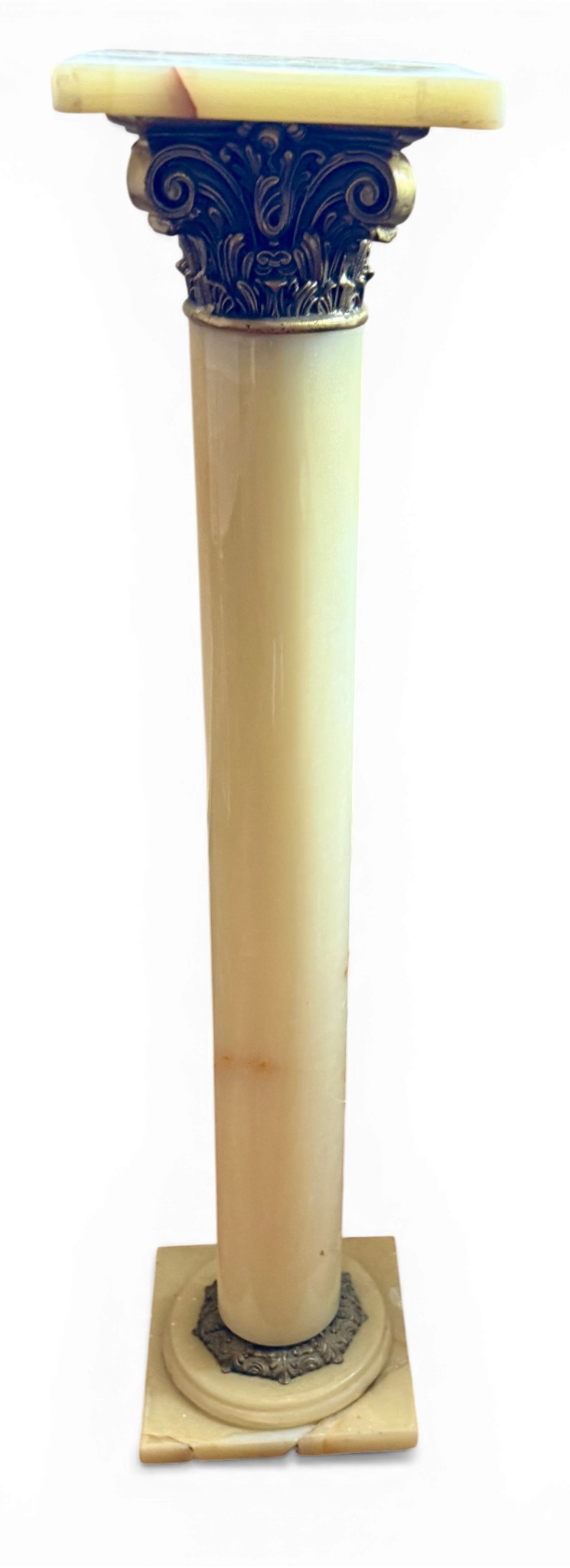 An onyx and gilt metal stand. Top 20 d x 90cm h.