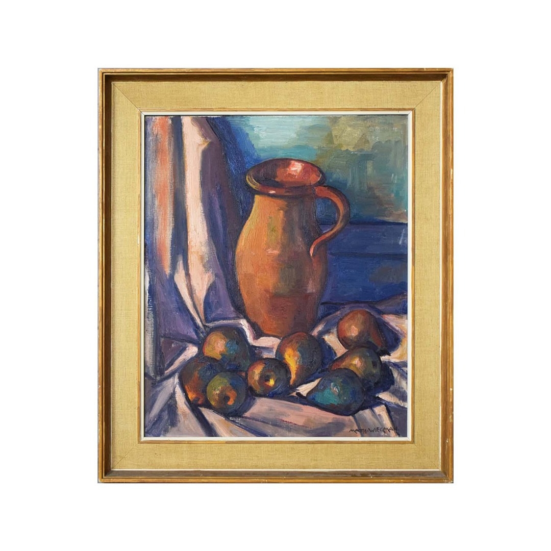 MATTHIEU WIEGMAN (ZWOLLE 1886-1971 BERGEN, NETHERLANDS). STILL LIFE WITH JUG FRUIT. Oil on Canvas, 54cms x 44cms, signed, Framed.