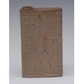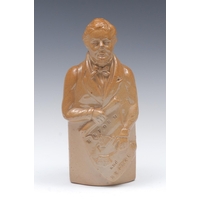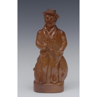 A 19th century brown salt glazed stoneware flask, a bag, 11.5cm wide, c.1860