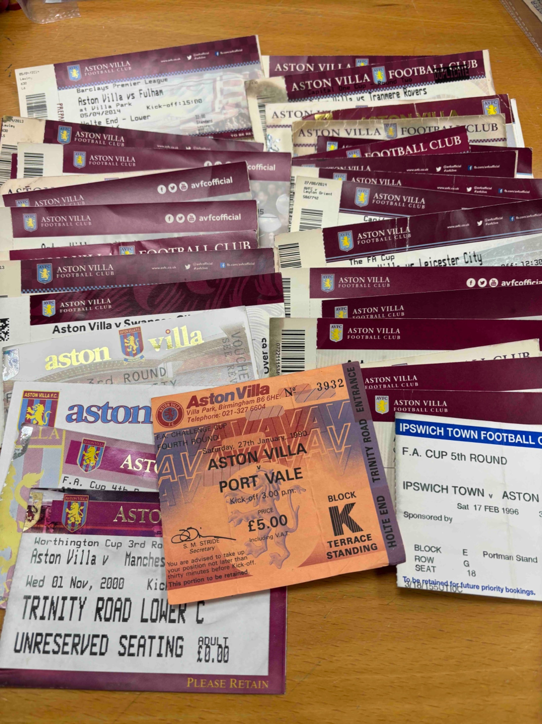 pack of 35+ Aston Villa Tickets, mainly FA Cup, from 1980 v Port Vale at home. Includes a couple of aways. Mainly 2000s/10s