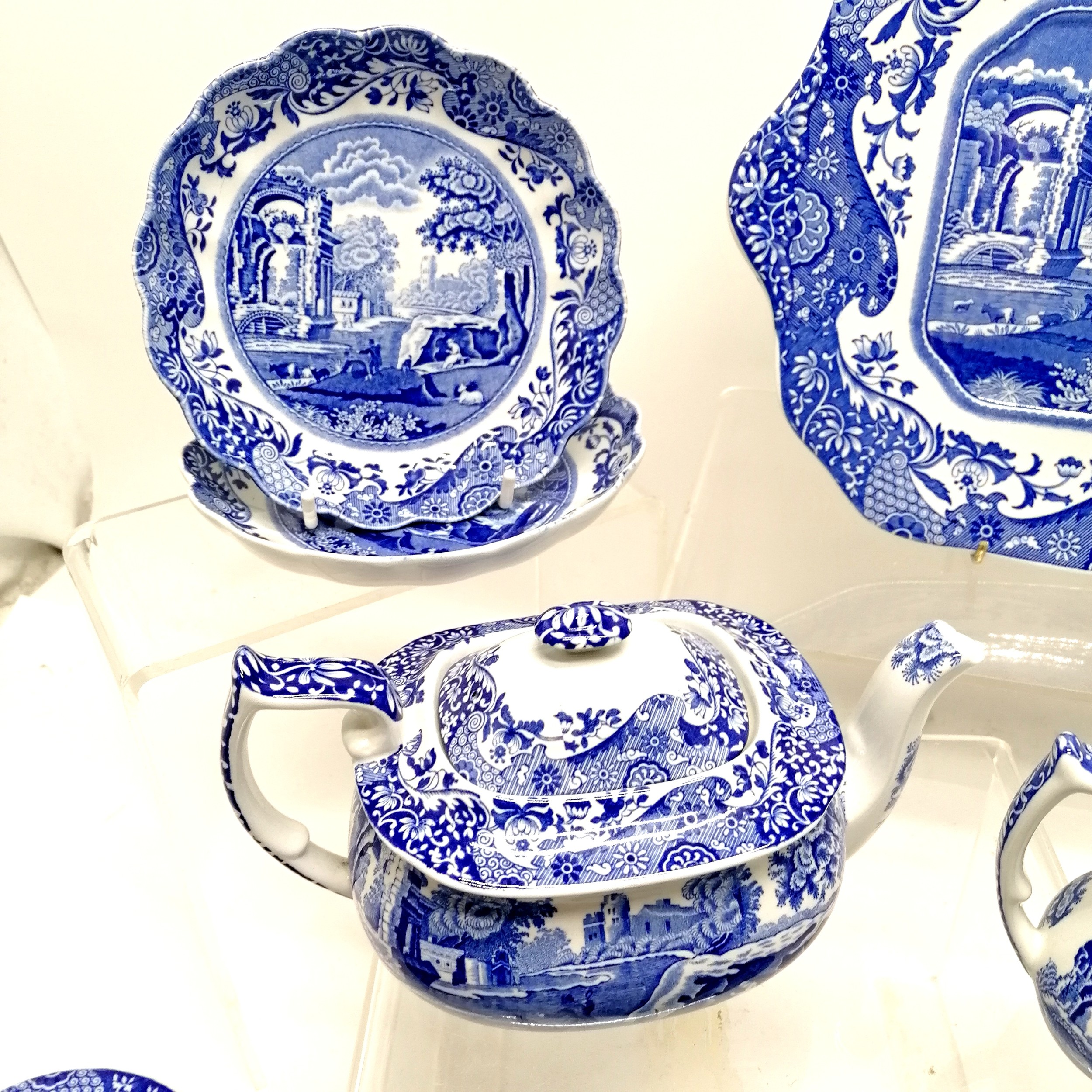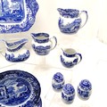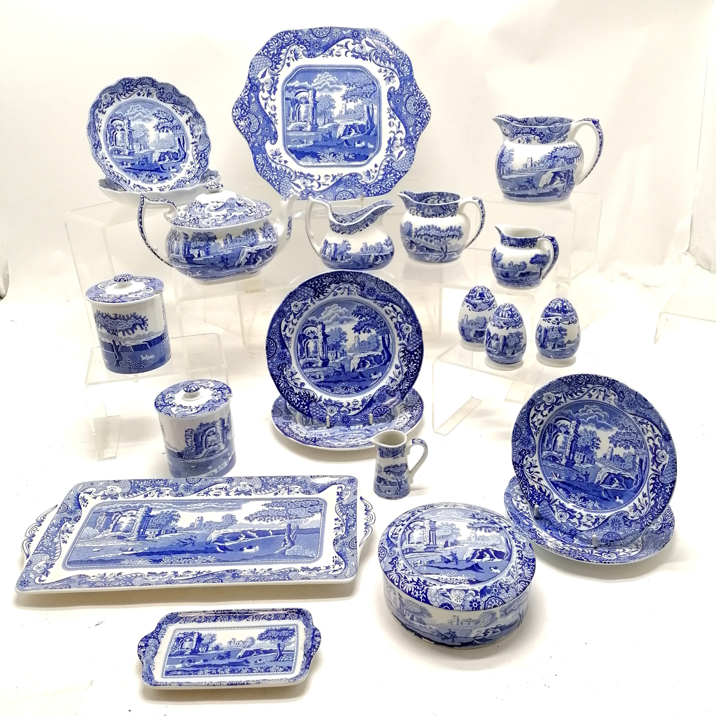 Spode Italian quantity of ceramics including teapot, sandwich plate cruet, 5 jugs (largest 11cm high), 2 lidded jam pots etc. - cake plate has chip to reverse otherwise all in good used condition