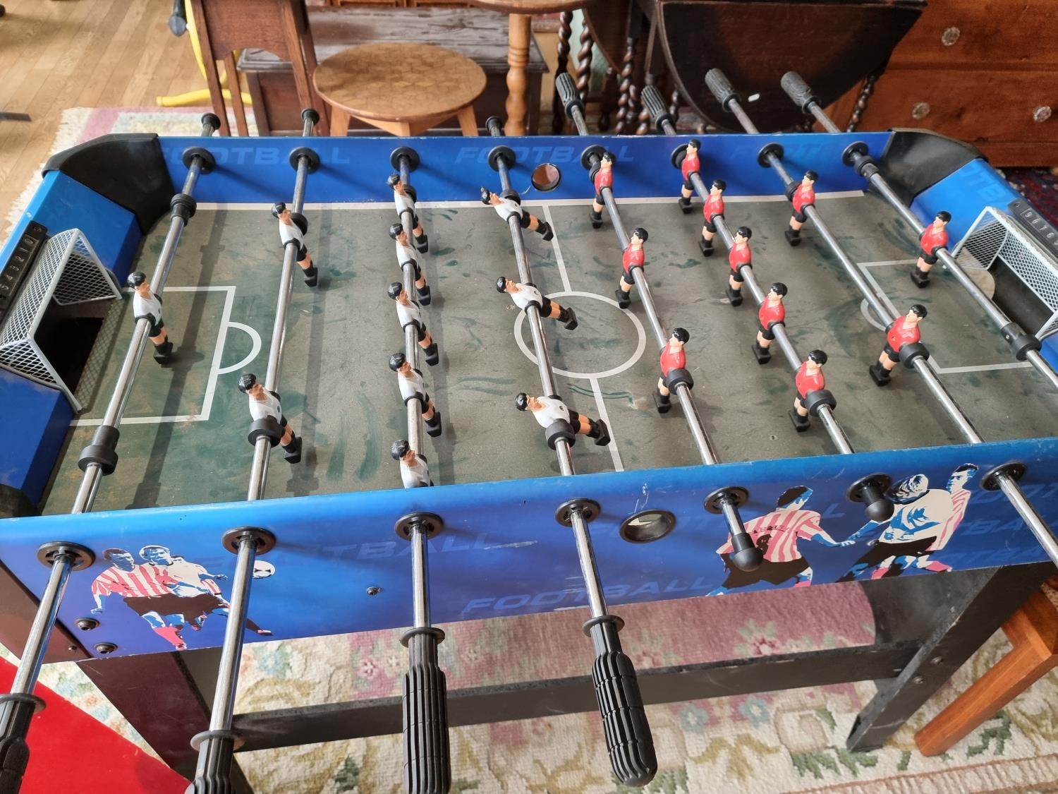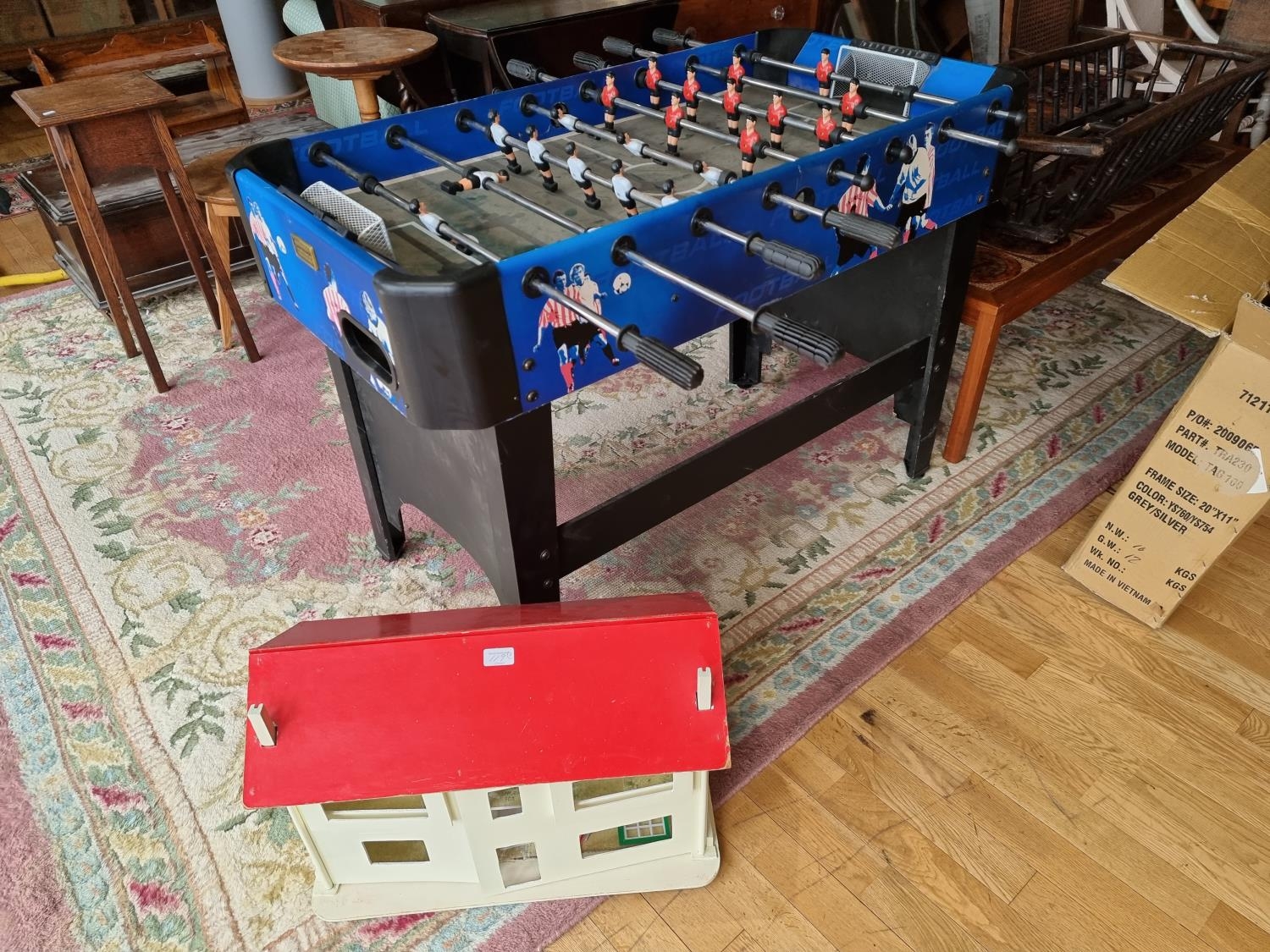 A Carromco freestanding football table together, with a scratch built doll's house (2)