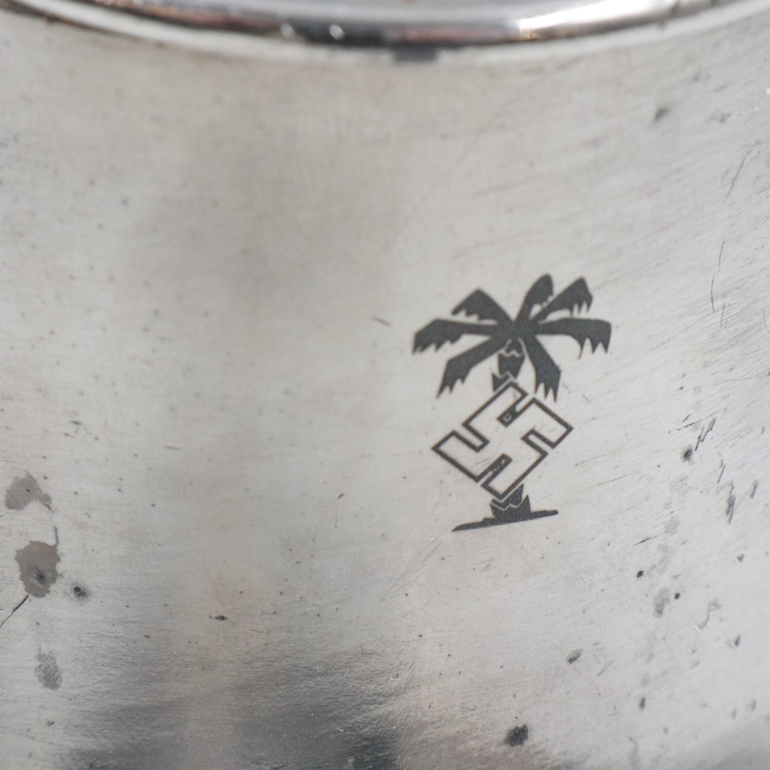 Middle Eastern silver-plated coffee pot engraved to the Afrika Korps. UK P&P Group 2 (£24+VAT for the first lot and £5+VAT for subsequent lots)
