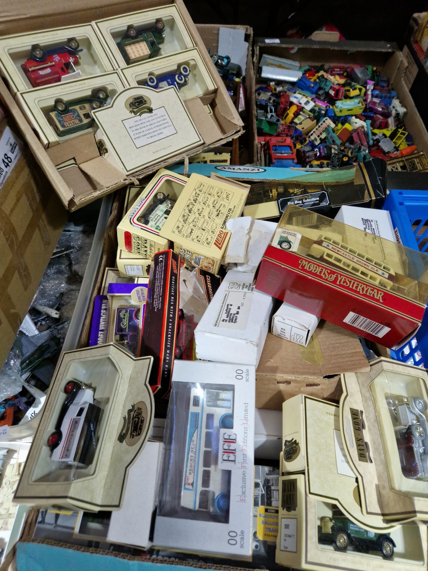 Various die cast model vehicles including Corgi busses, The Ribble collection, Lledo, Corgi Blackpool tram.