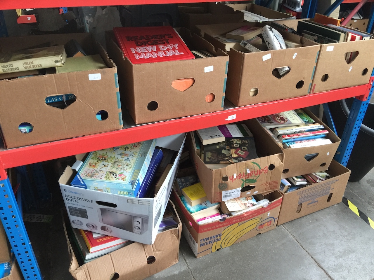 A large quantity of books - middle shelf and bottom - approx 13 boxes.