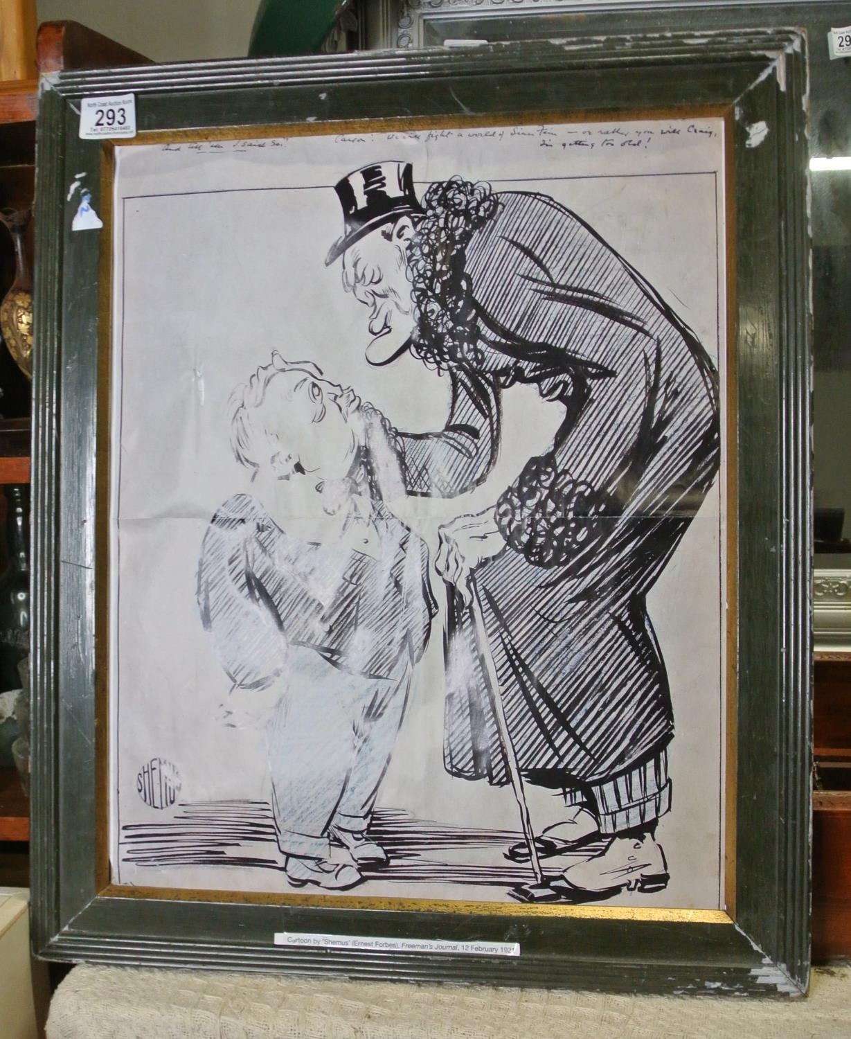 A framed print of a cartoon by 'Shemus' (Ernest Forbes), Freeman's Journal, 12 February 1921.