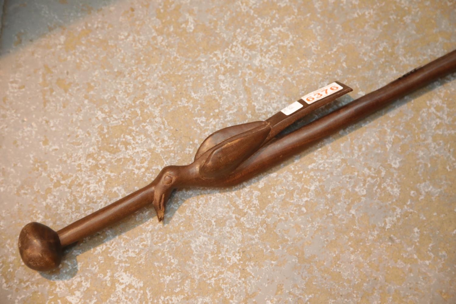 Ethnic carved wood walking stick with bird. P&P Group 2 (£18+VAT for the first lot and £2+VAT for subsequent lots)