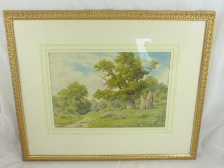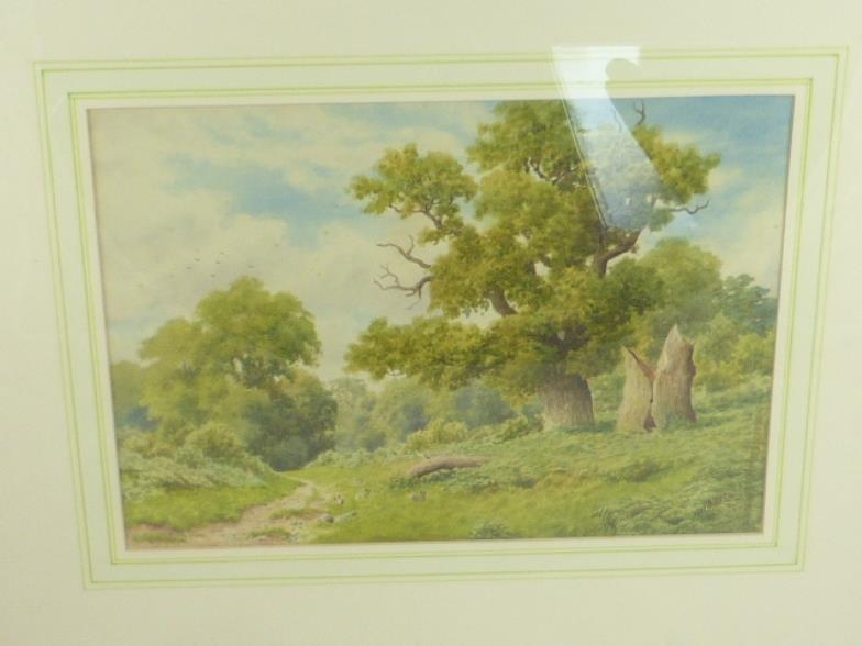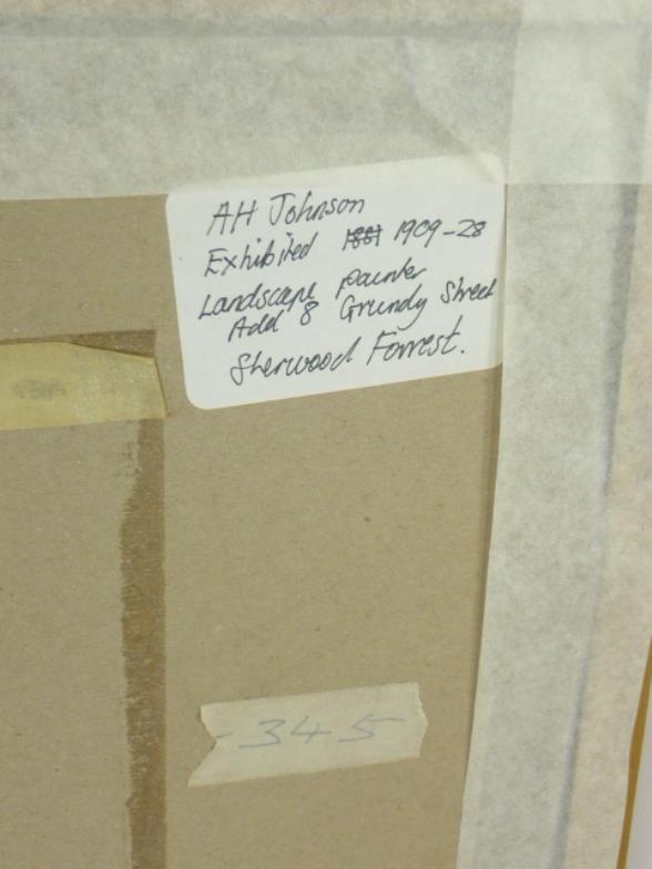 A H Johnson (Ex.1909-1928) 'A bit of old Sherwood' watercolour, signed with initials and dated 1924, inscribed on reverse, 10.5" x 14" Exhibited 1909-1928