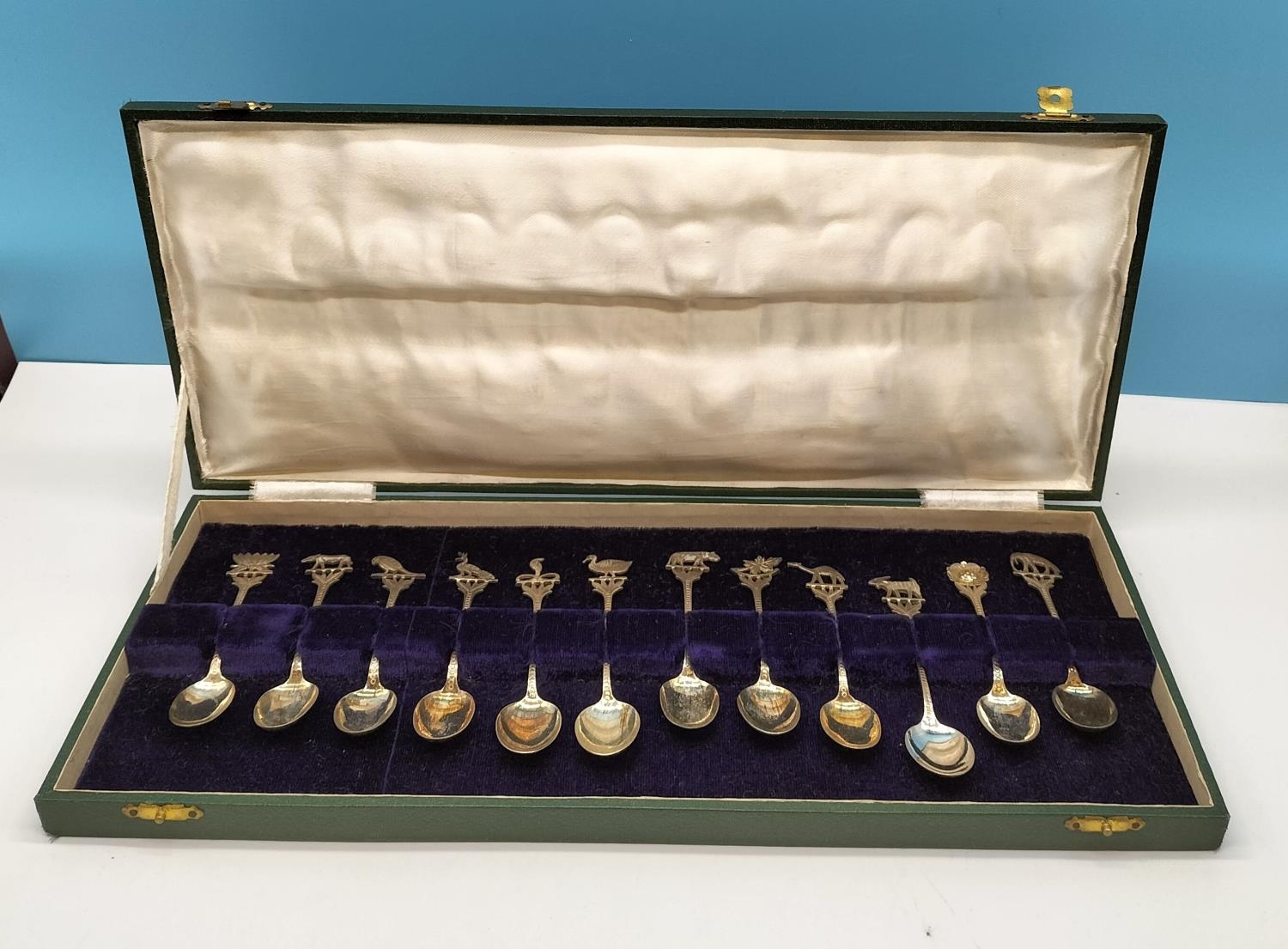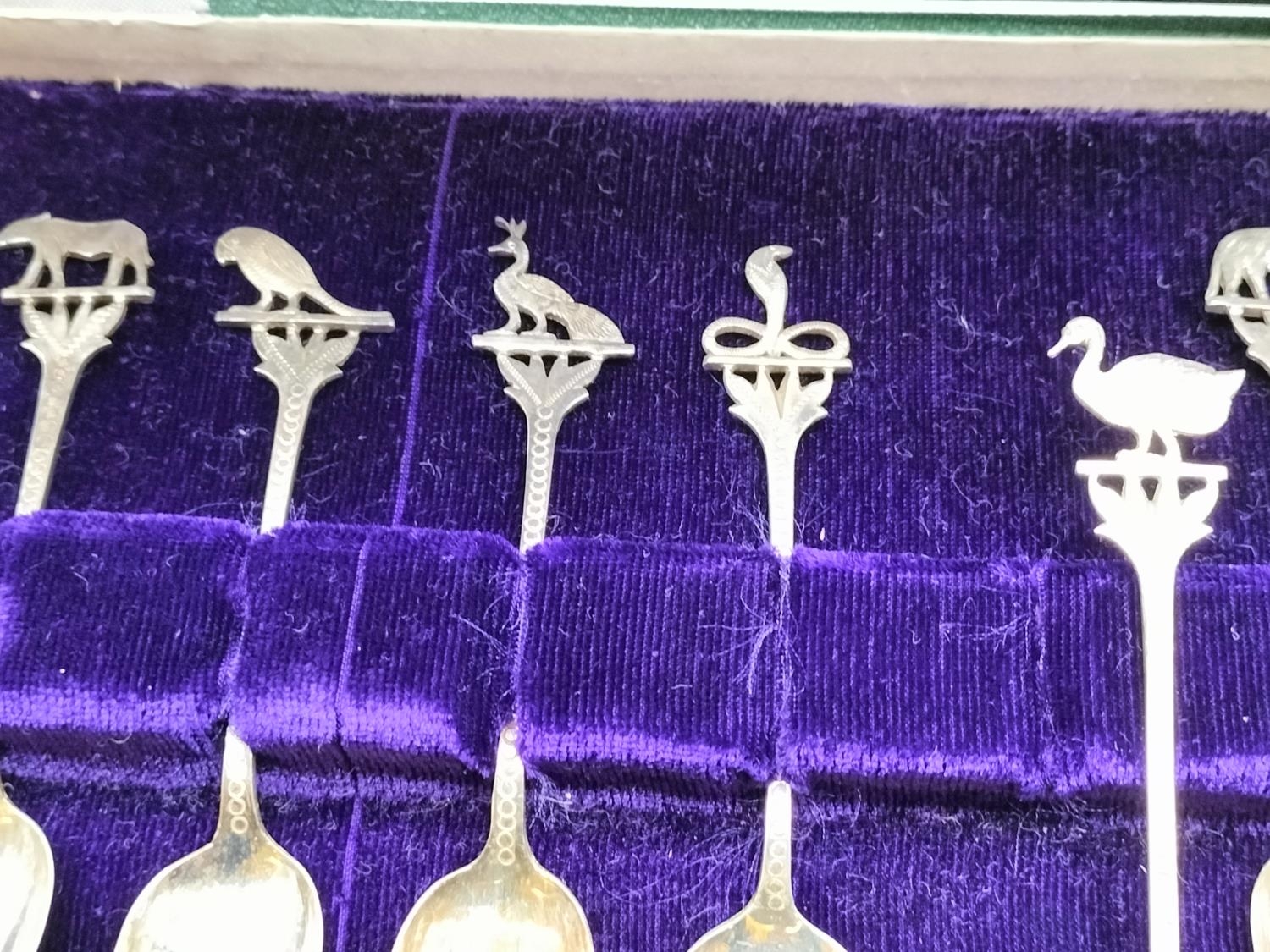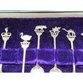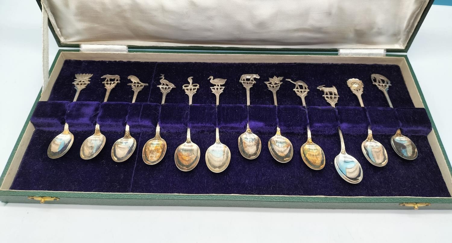 Cased Set of 12 Teaspoons with Middle Eastern/Indian Animal and Flower Handle. Unmarked. Tested As Silver Approximately 98Grams