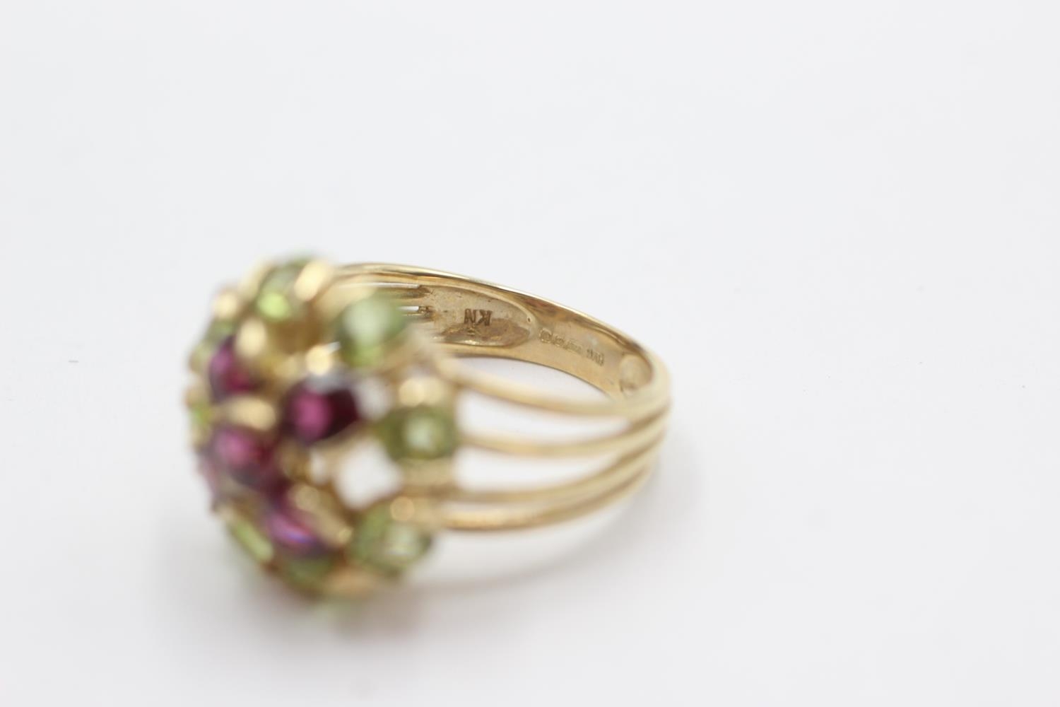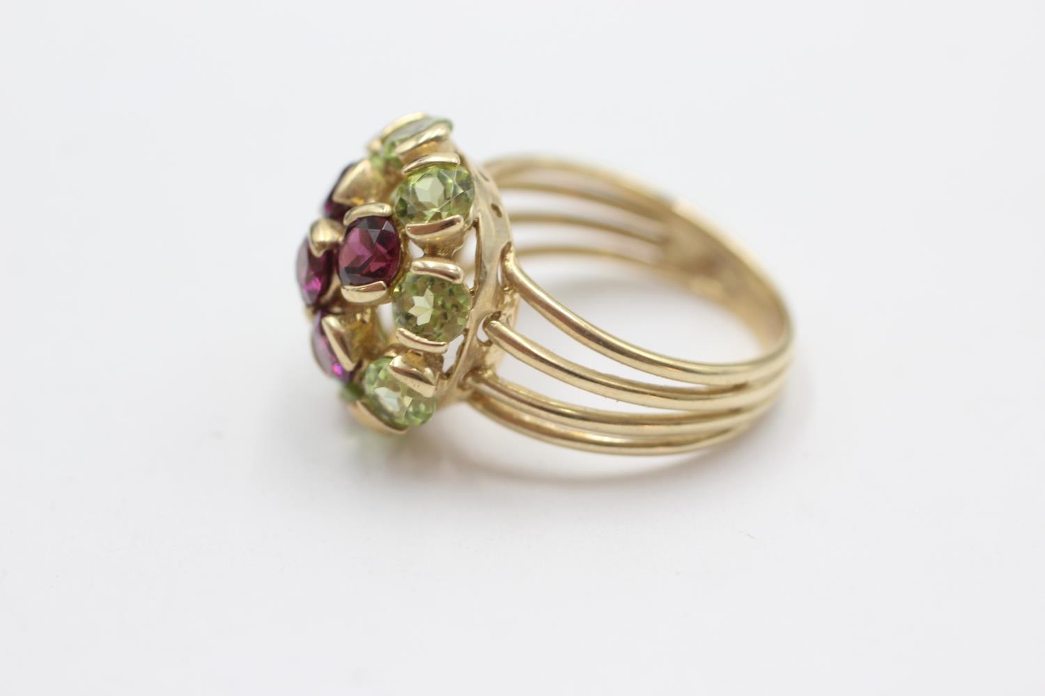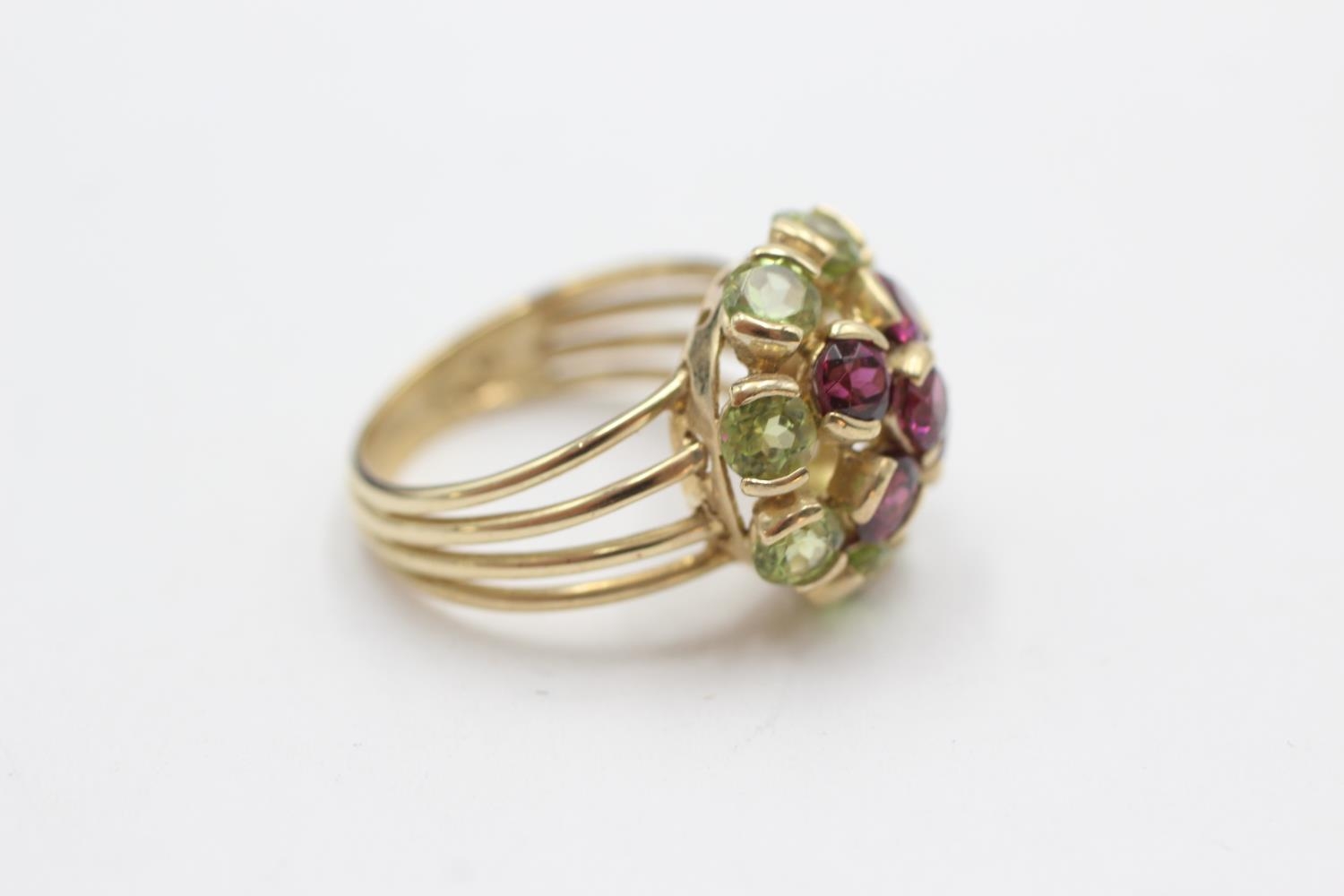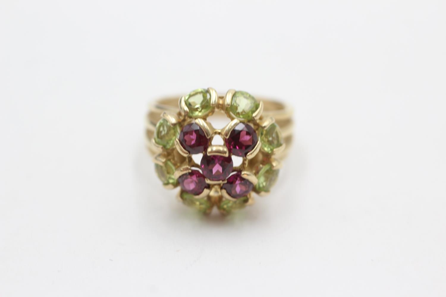 9ct gold peridot & garnet cluster dress ring (4.8g) Size M