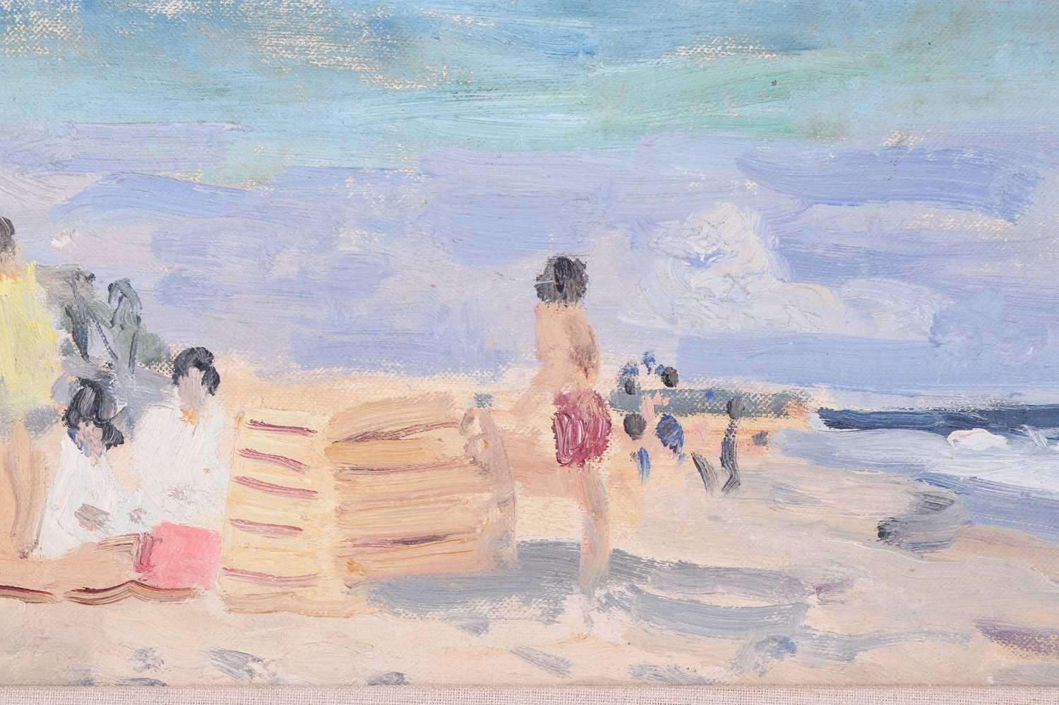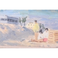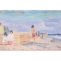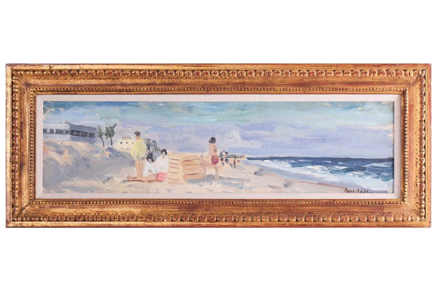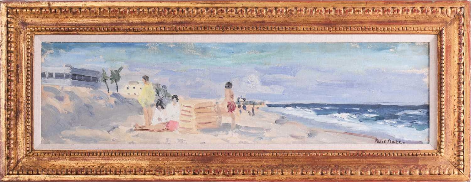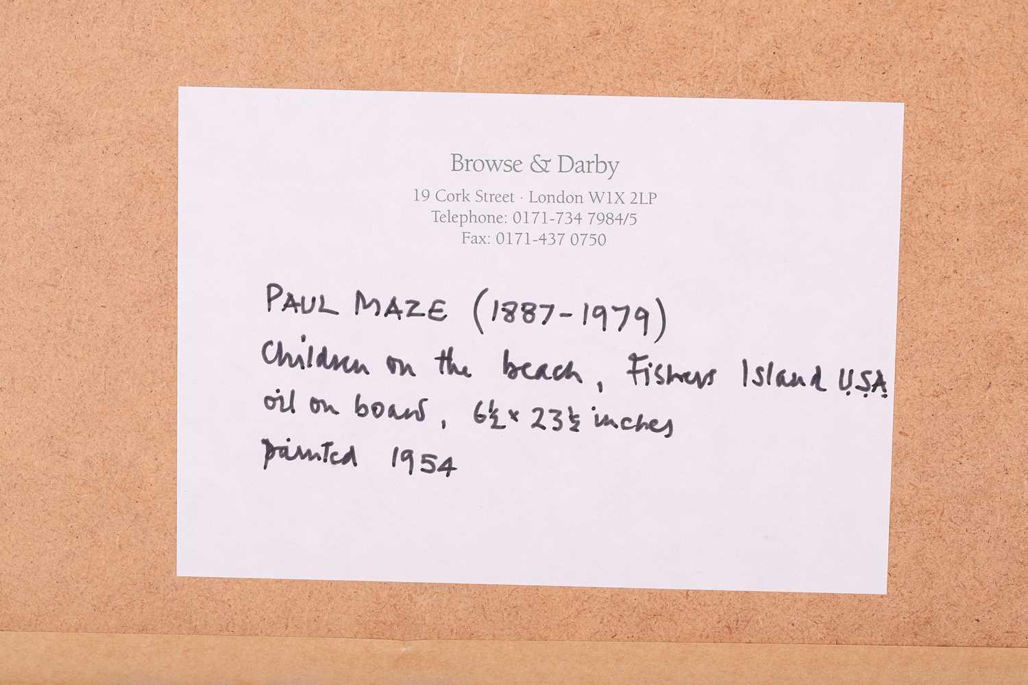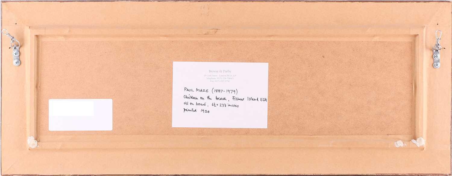 Paul Lucien Maze (1887 - 1979), French, Children on a beach (1954), Fishers Island USA, signed, oil on board, 15.5 x 60 cm, framed 28 x 72 cm Browse & Darby, Cork St London, label verso