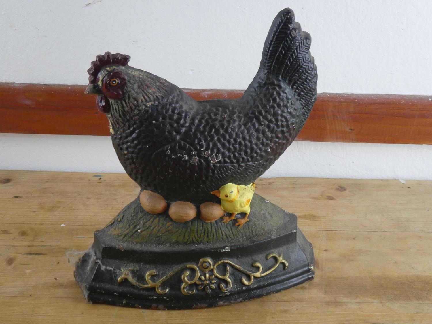 A cast iron 'Hen' doorstop.