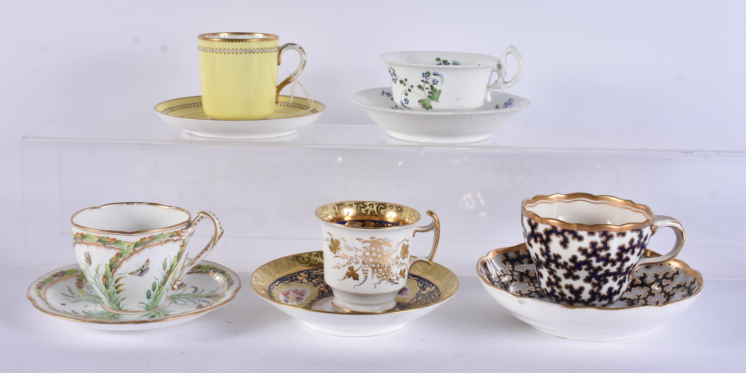 FIVE 19TH CENTURY WORCESTER CUPS AND SAUCERS. (10)