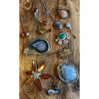 A Selection of vintage Japanese 24ct gold inlaid earrings, bracelet and brooch by Amita