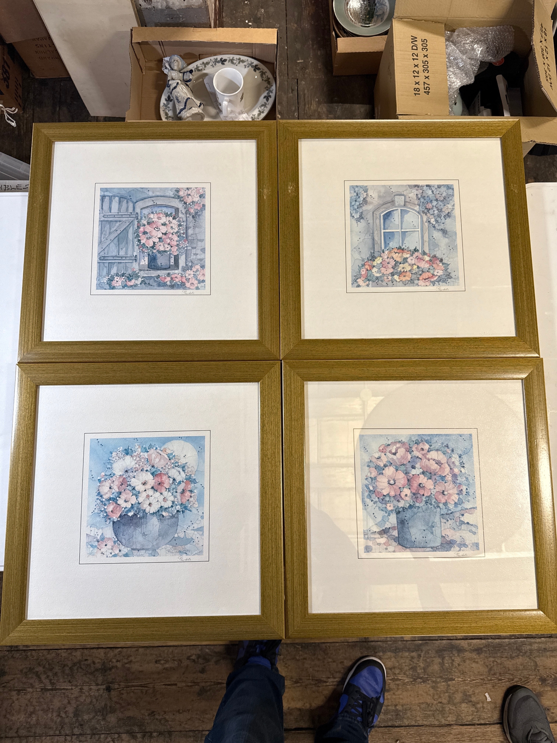 A Set of Four Signed Limited Edition Floral Prints by S. C. Lo