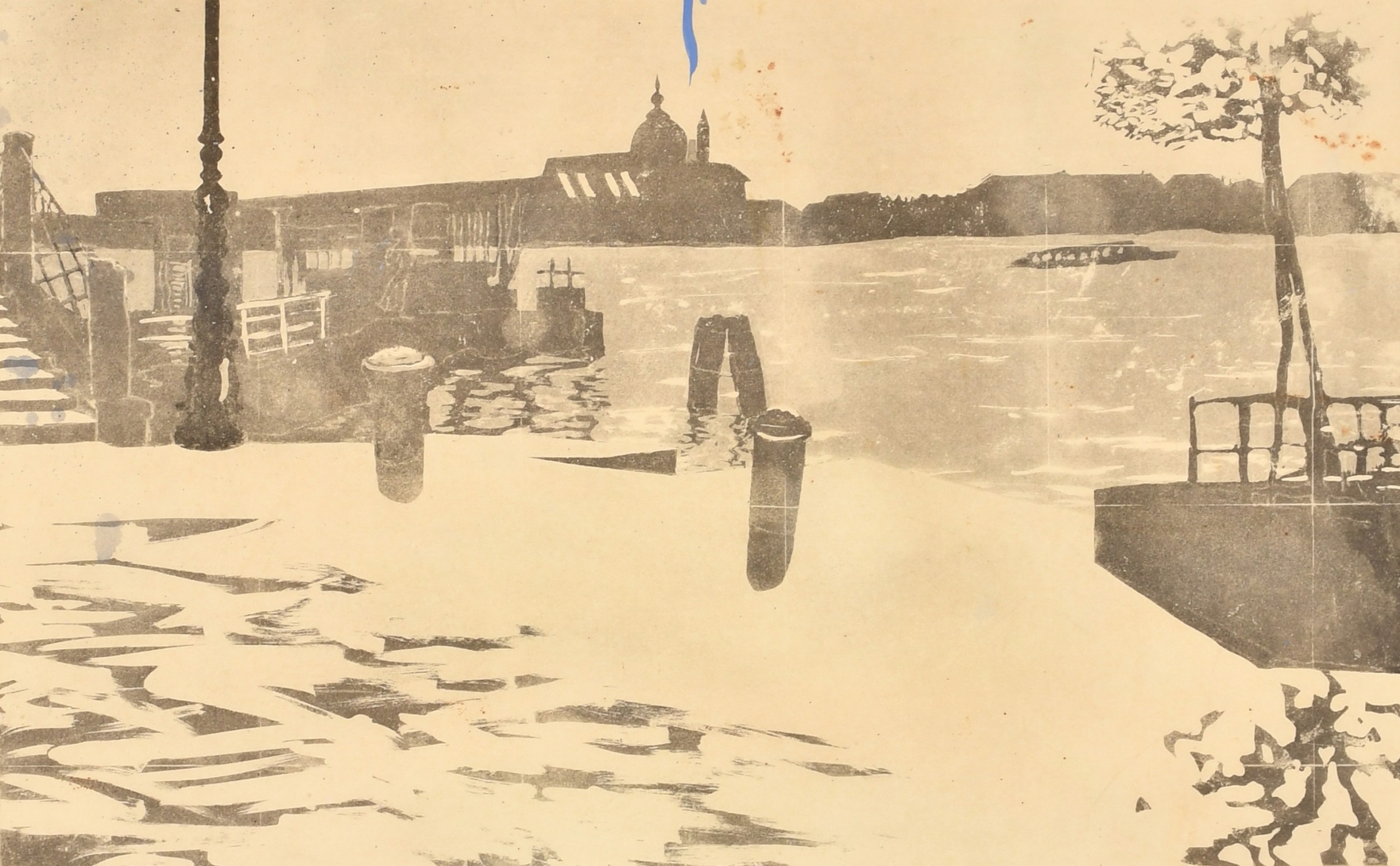Patrick Procktor (1936-2003) British. 'Venetian View, with Basilica Santa Maria Della Salute in the distance', Etching, 13.25" x 21" (33.6 x 53.3cm). Note: Note: To be included in the forthcoming publication 'Patrick Procktor: The Complete Prints', published by the Redfern Gallery in October 2025. Cat. Rais. Reference CH 90