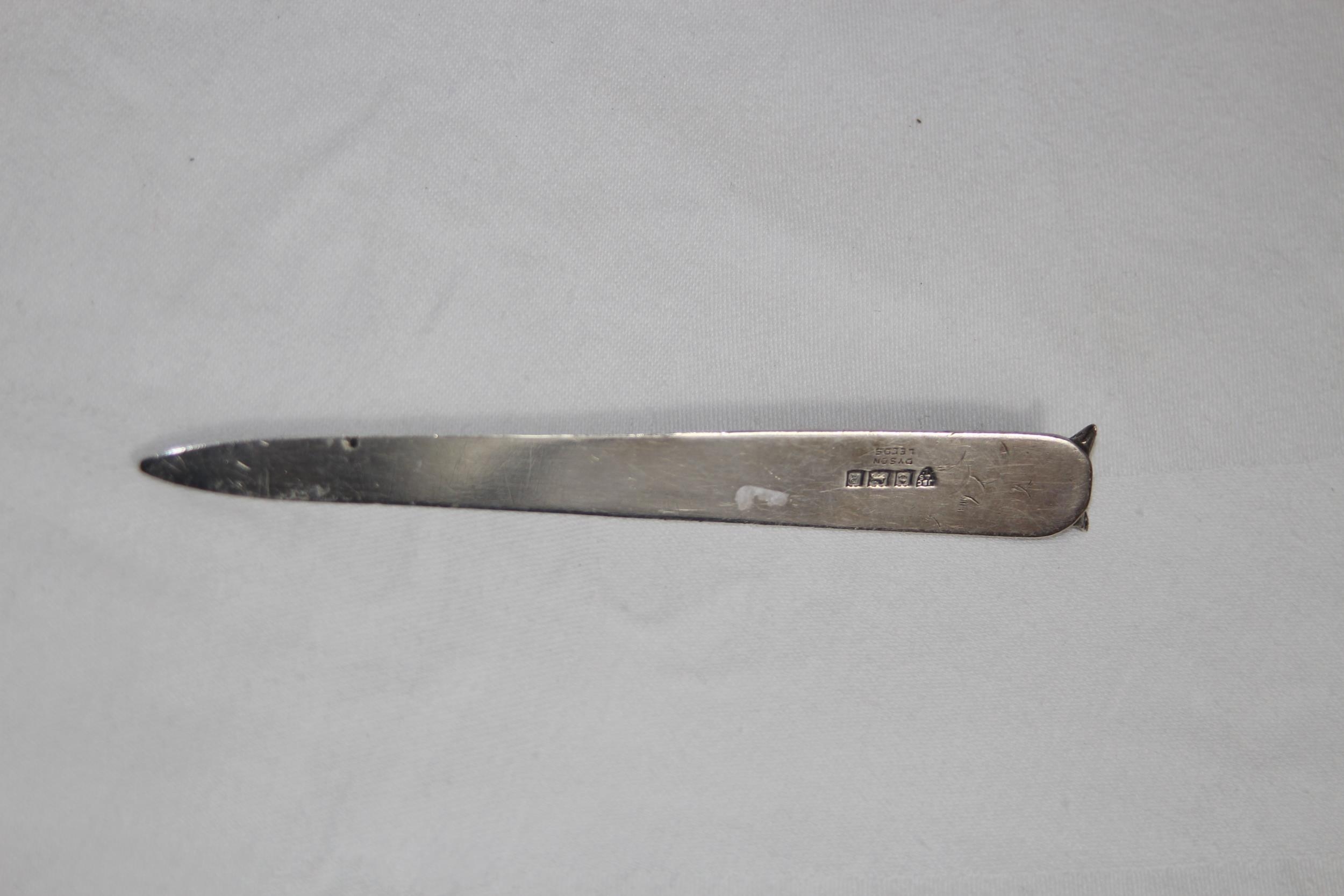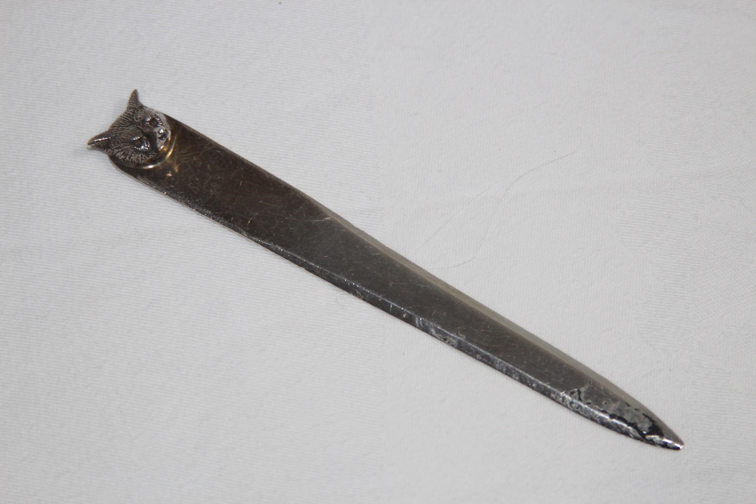HALLMARKED SILVER LETTER OPENER WITH FOXES HEAD - 26.6G - BIRMINGHAM 1991 - J.B CHATTERLEY