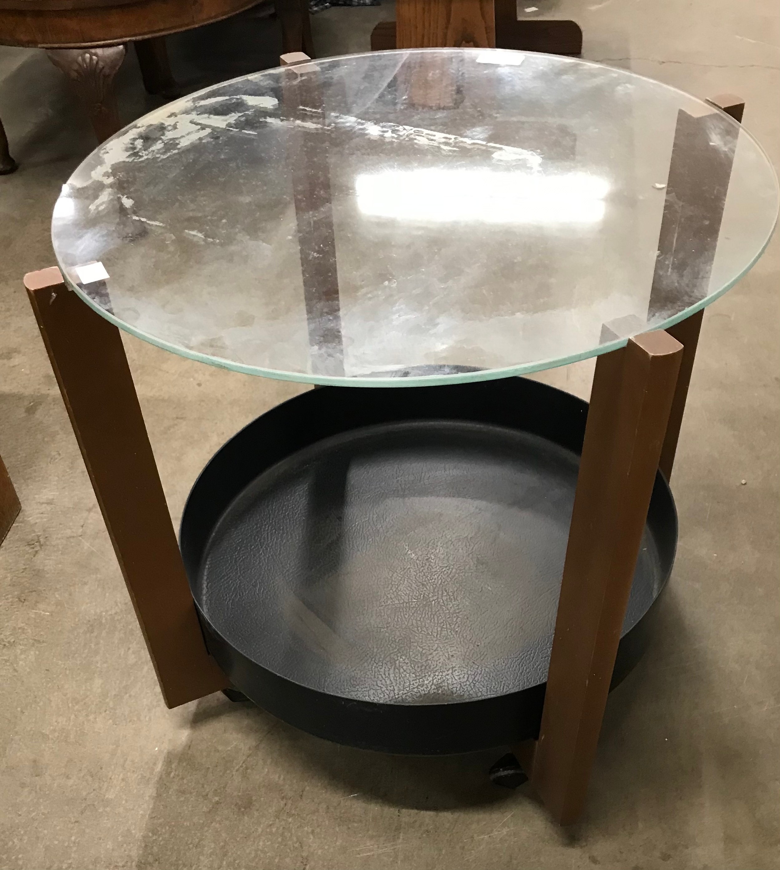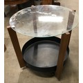 A beech and glass topped circular coffee table