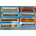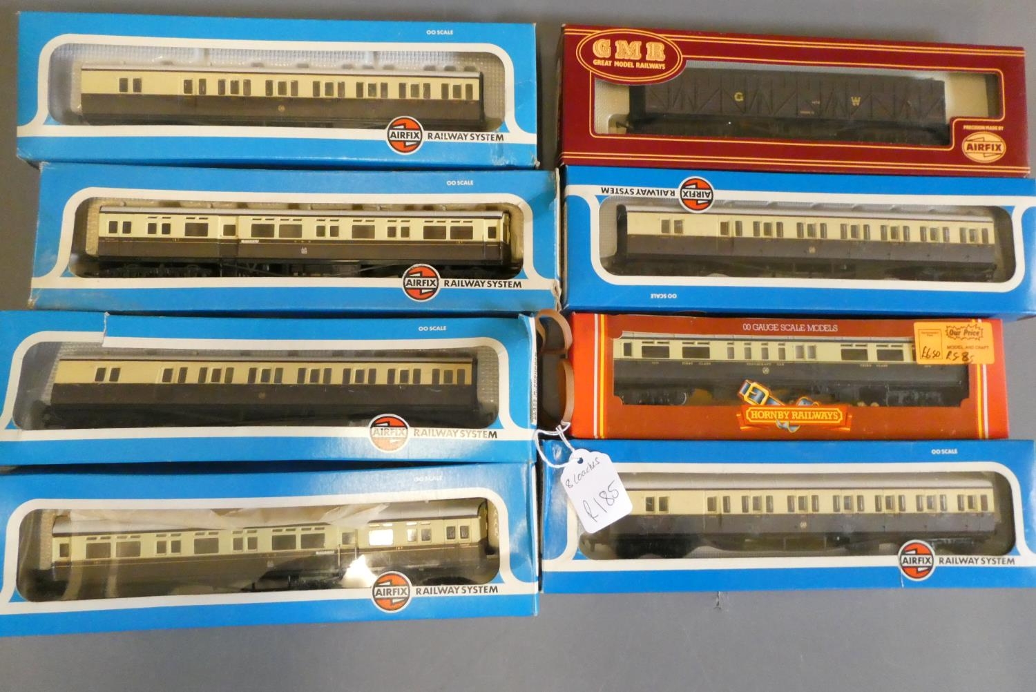 Eight GWR coaches by Airfix and Hornby, all items boxed, good to excellent