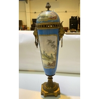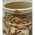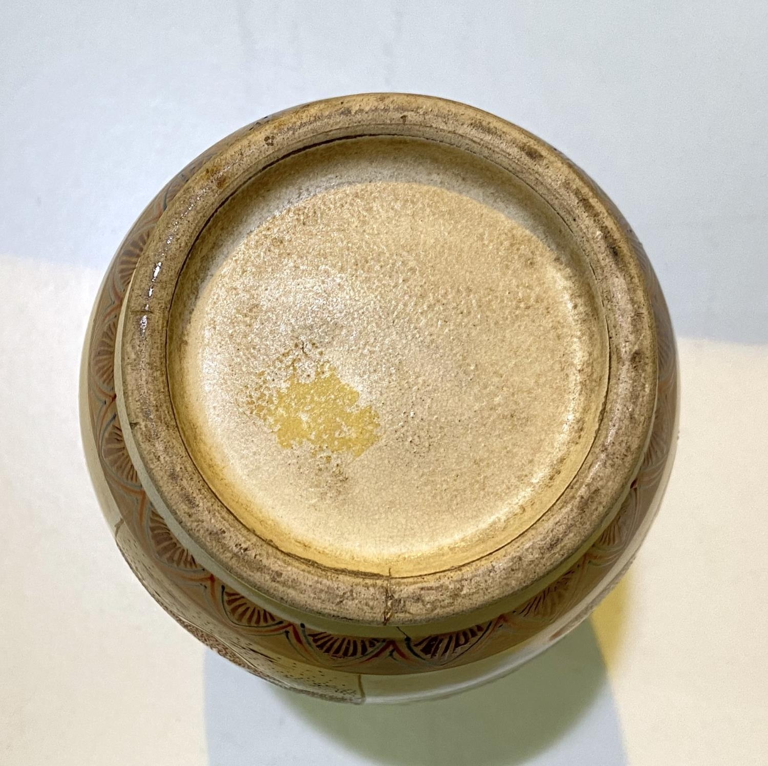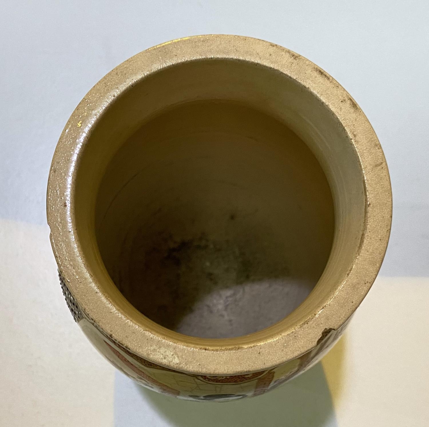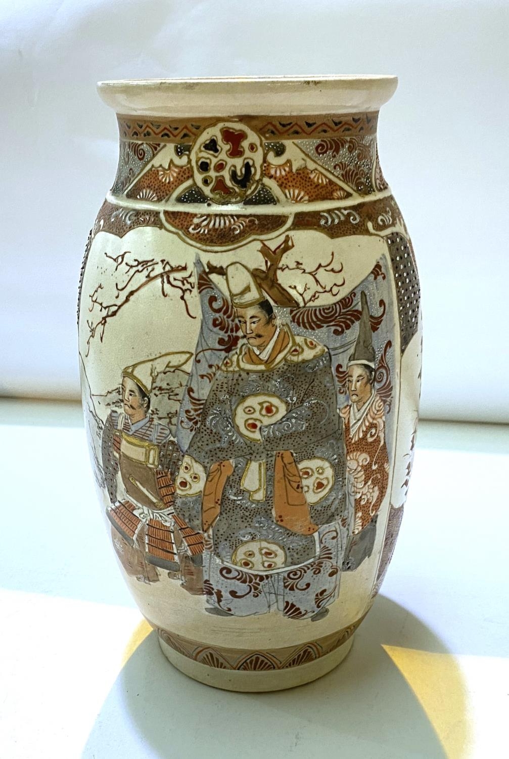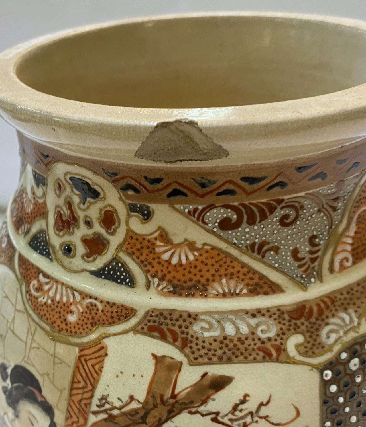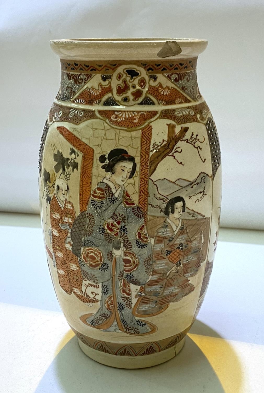 A Japanese Meiji period satsuma vase with male and female figure decoration in panels, height 24cm (chips to rim)