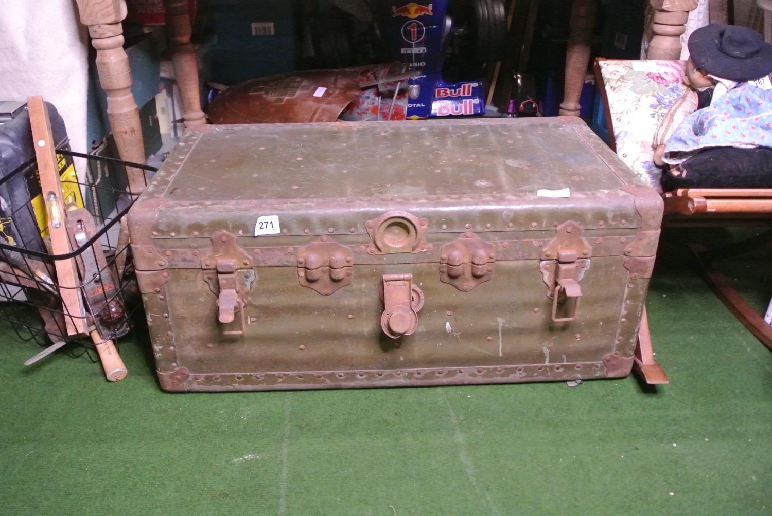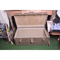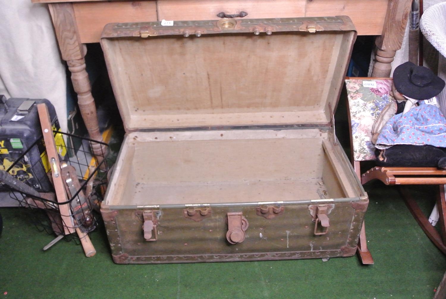 A vintage leather bound steamer trunk.