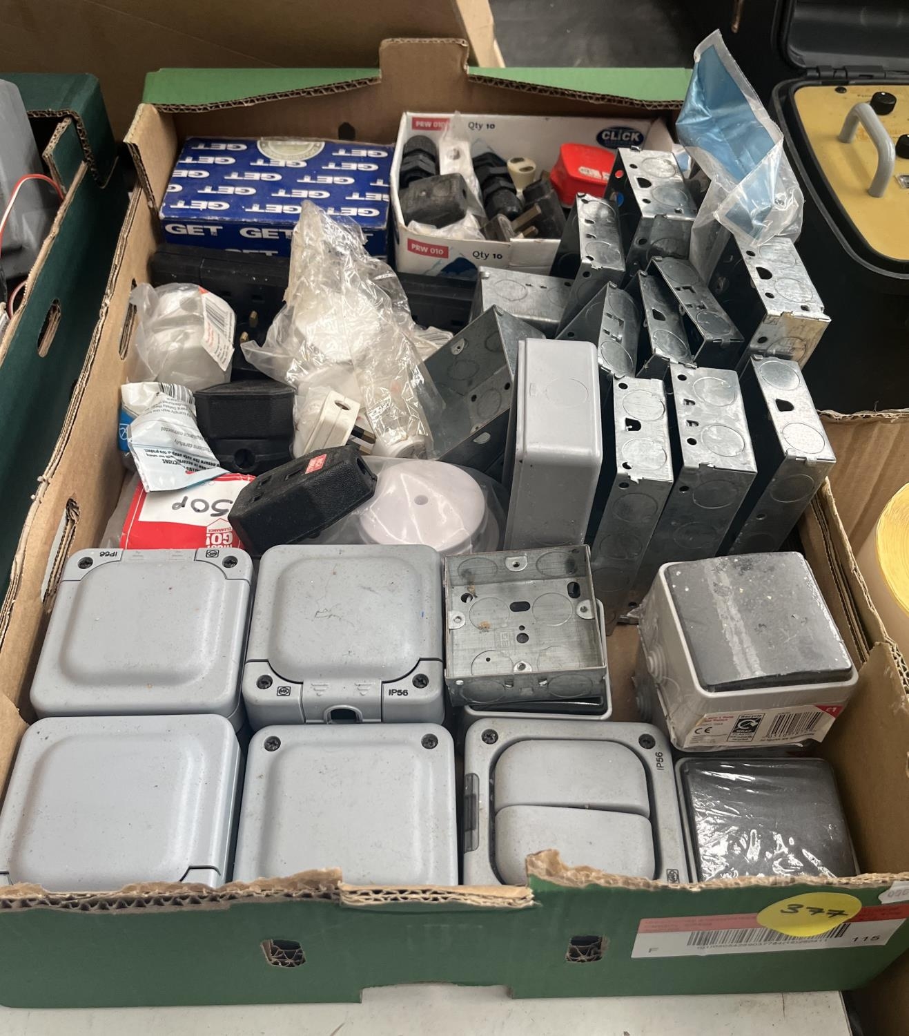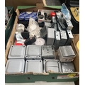 Box containing a quantity of electrical components and outdoor enclosures etc