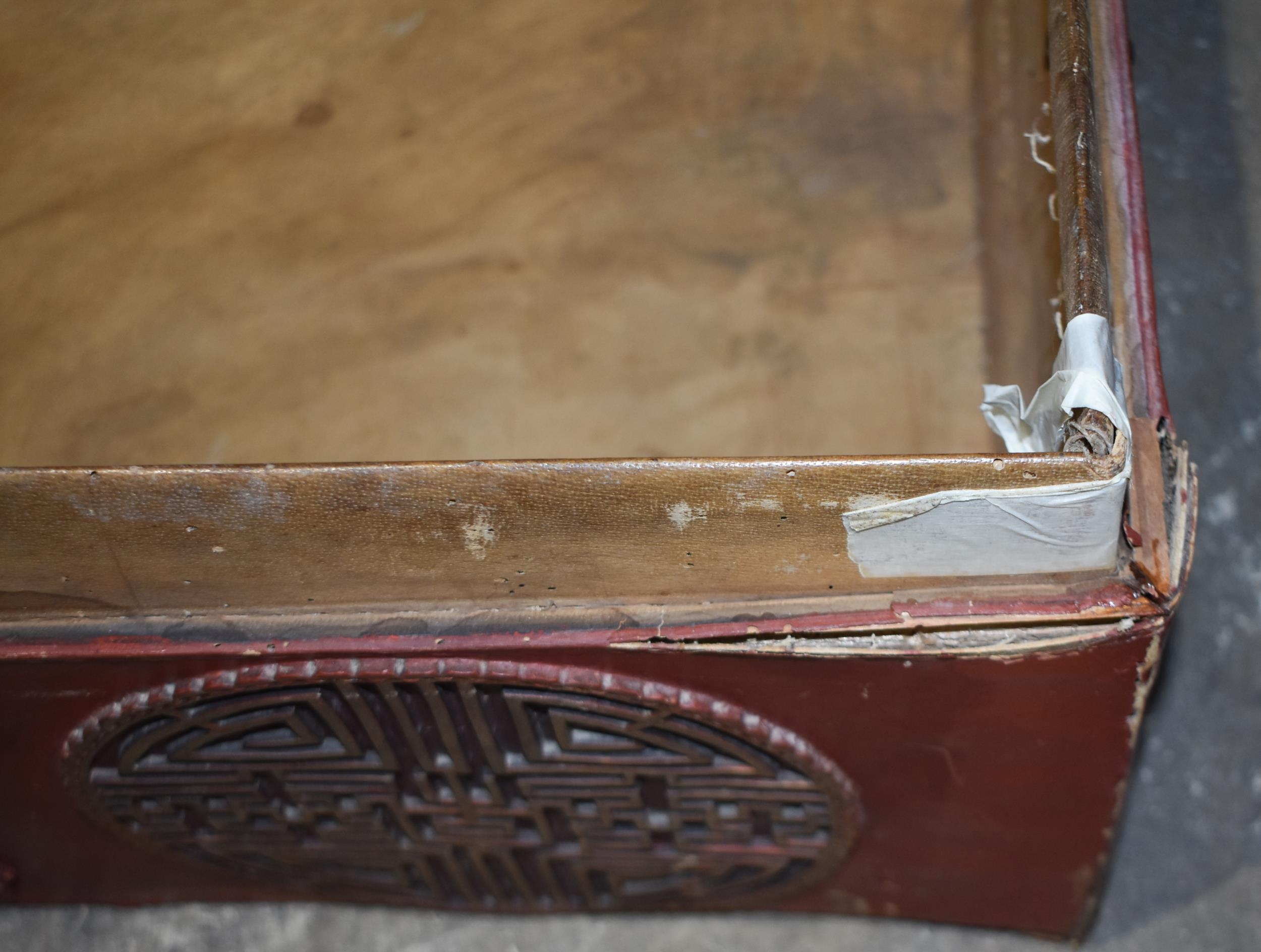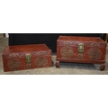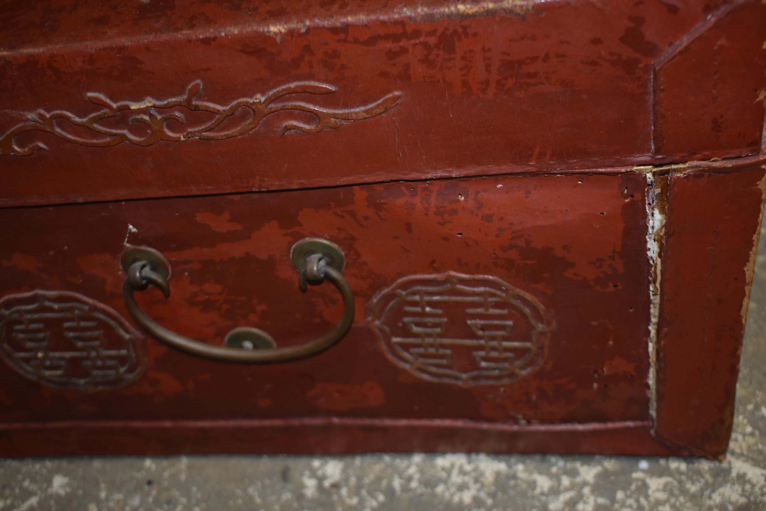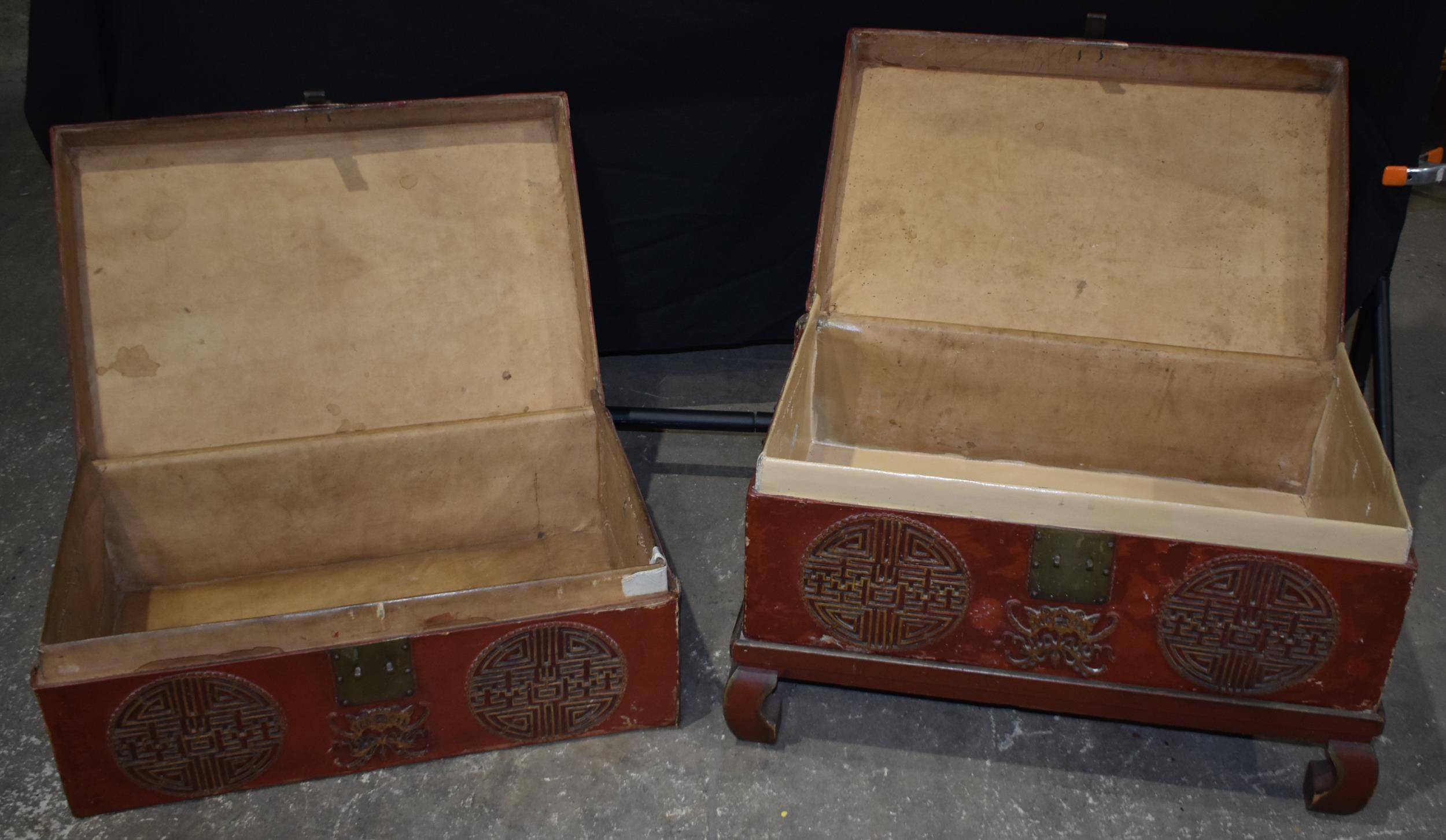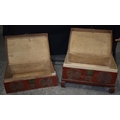 A pair of early 20th Century Chinese lacquered wood and leather chests 46 x 74 x 47cm (2)