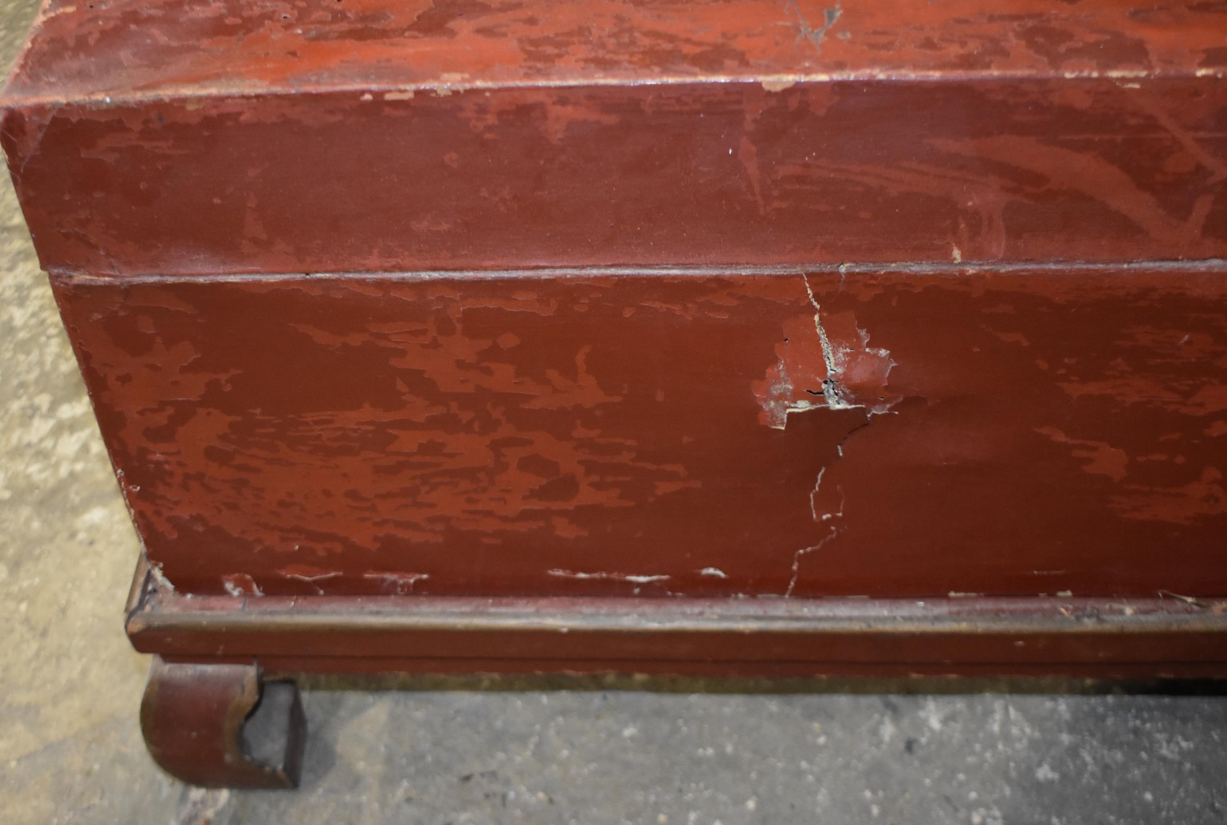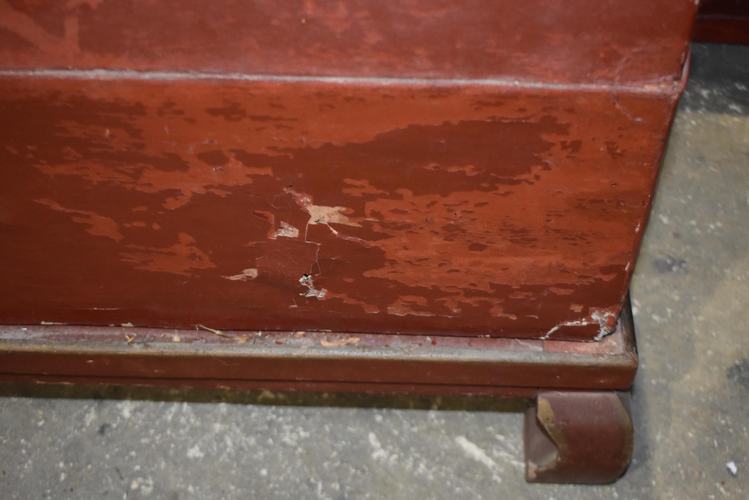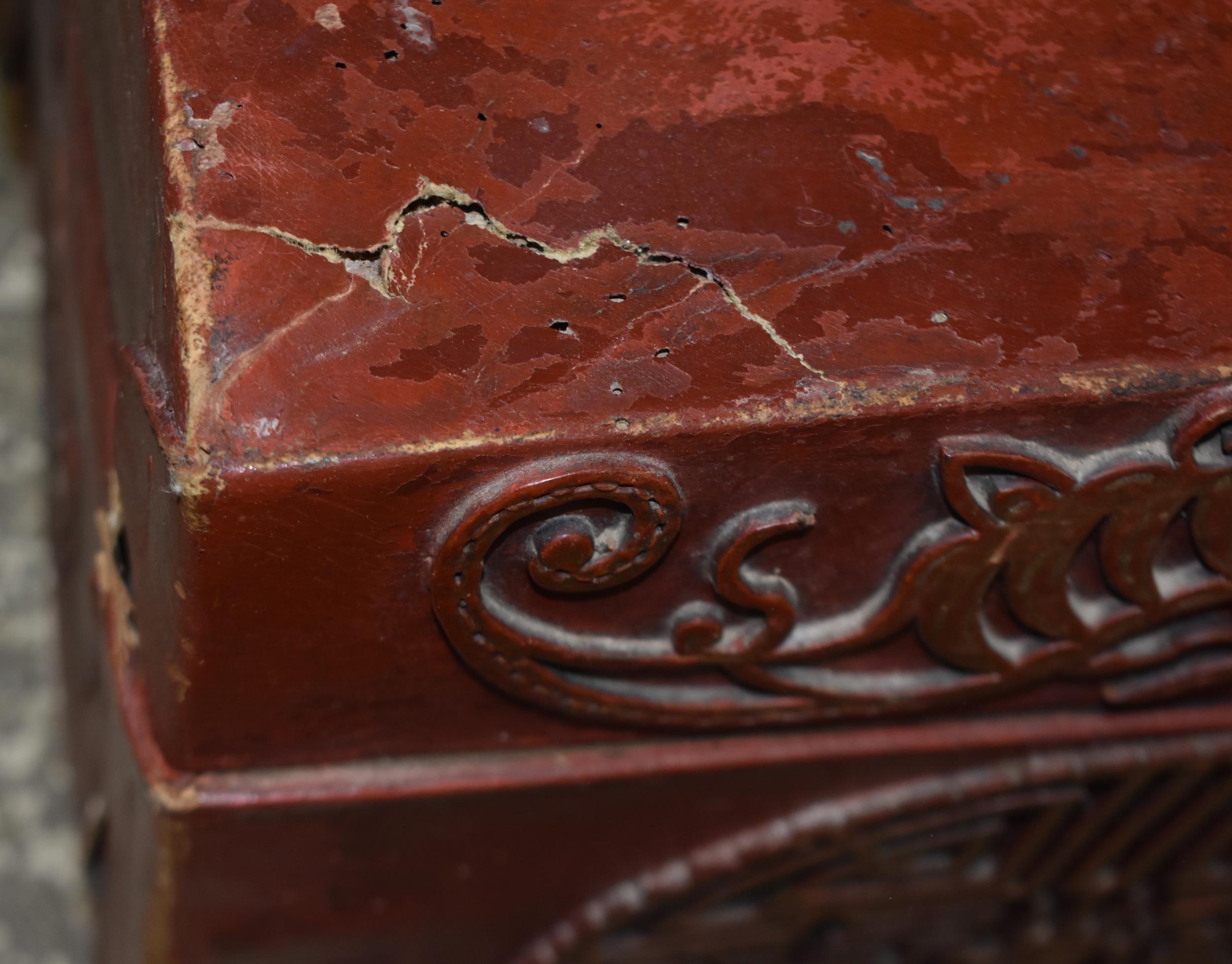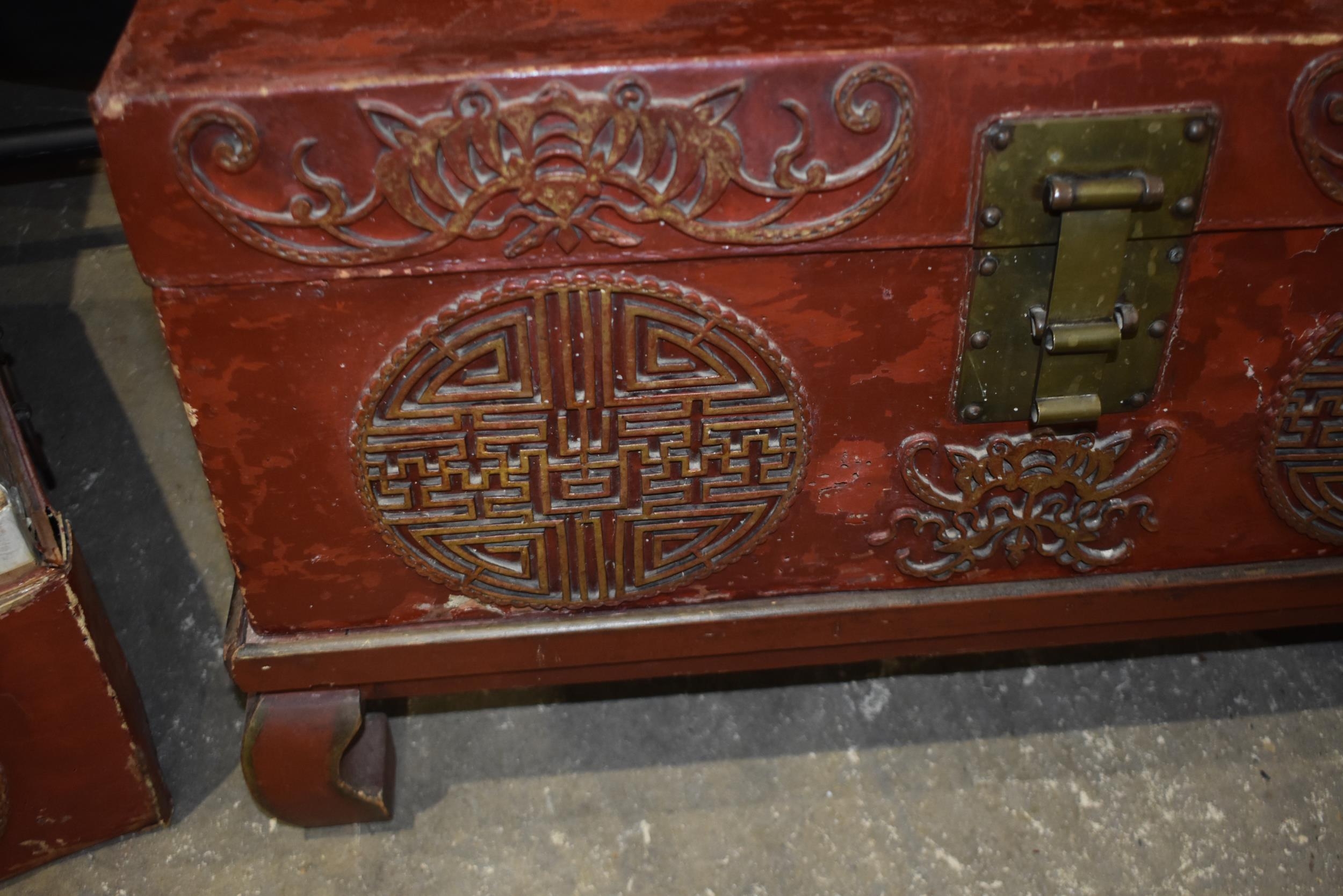 A pair of early 20th Century Chinese lacquered wood and leather chests 46 x 74 x 47cm (2)