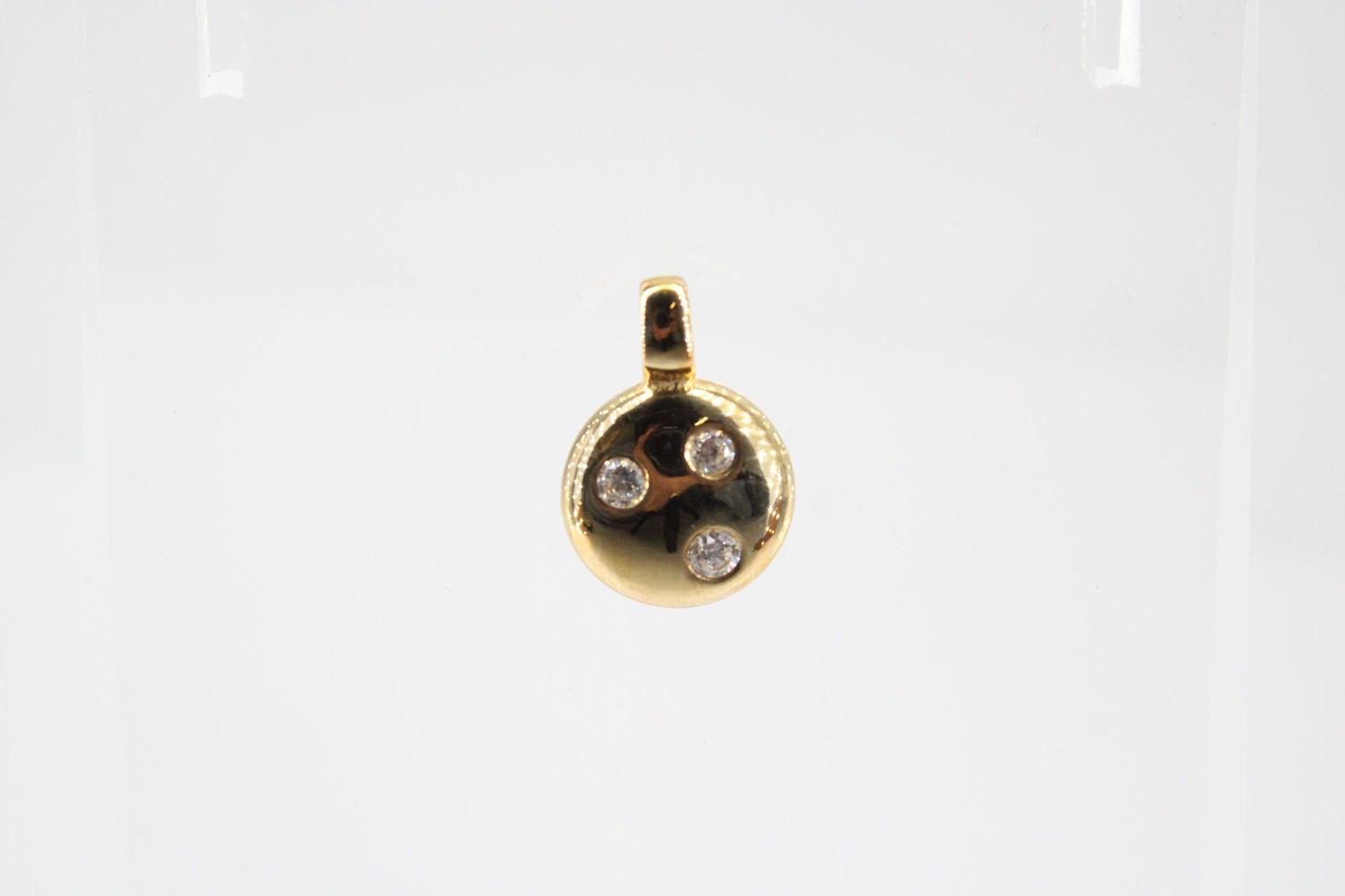 A 9ct gold circular pendant set with CZ. Weight 2.22grams