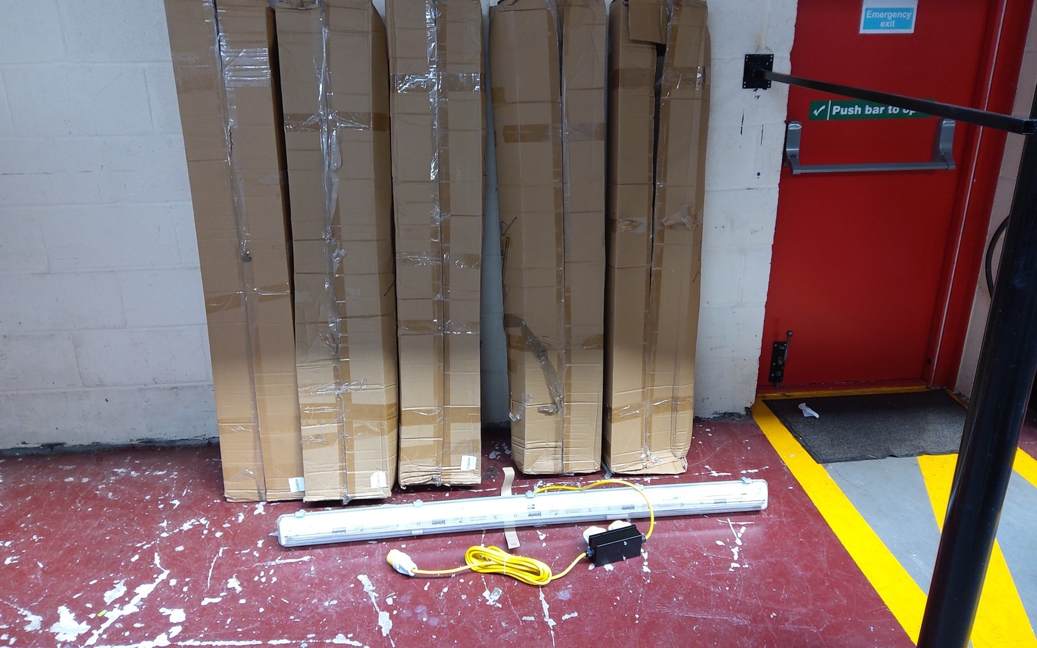 5 defender 110v work light fittings with (1x58x) 5ft Boxed
