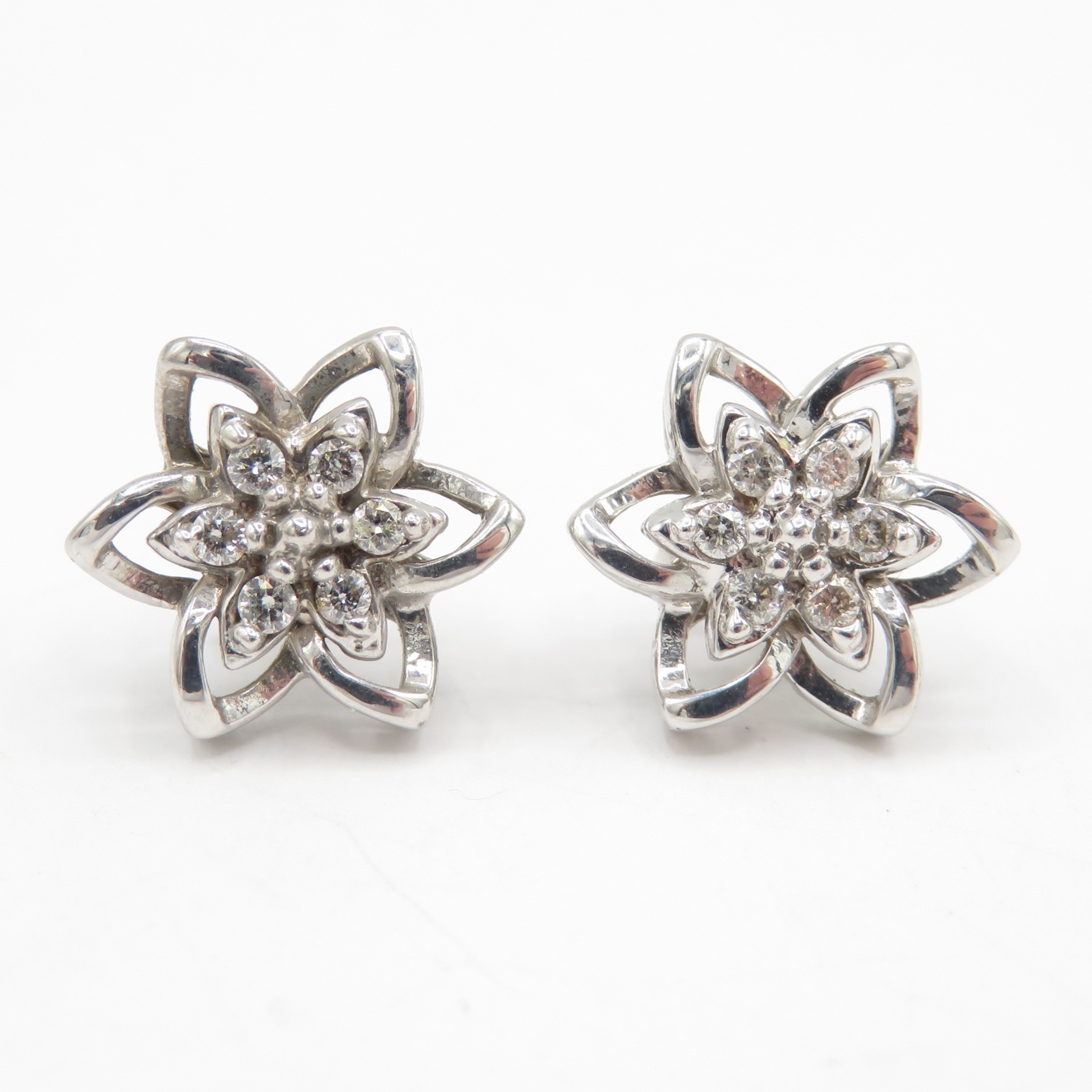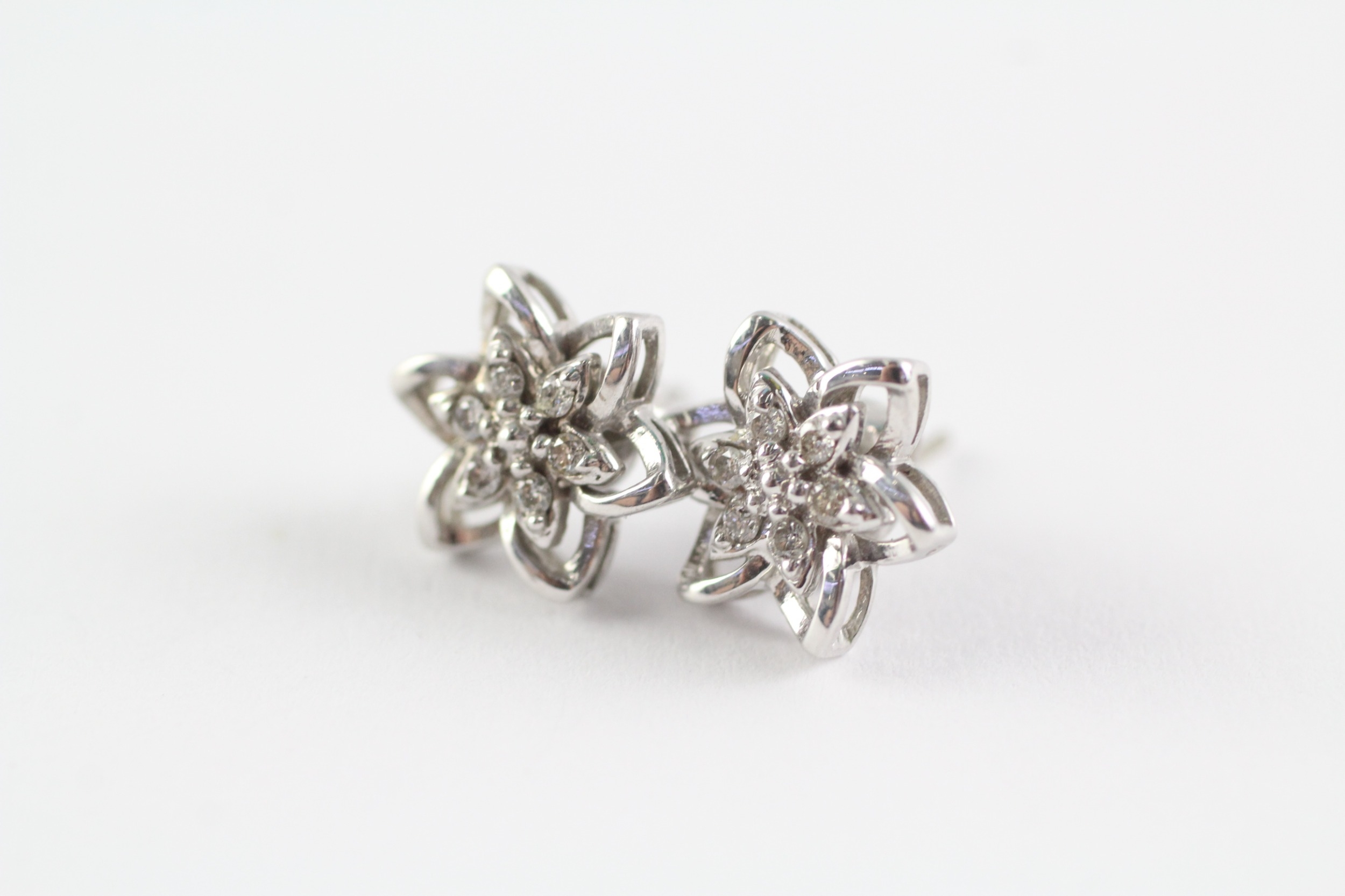 9ct white gold diamond floral stud earrings (2.1g)