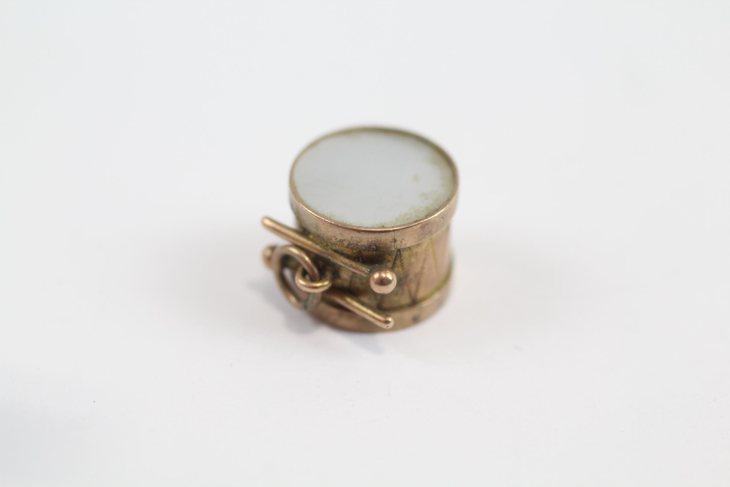 9ct Gold Vintage Mother-Of-Pearl Set Drum Charm (1.8G)