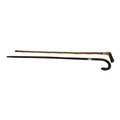 Having carved antler handle and silver mounted collar for Henry Smith of Birmingham, 1905, together with another early 20th Century walking stick, silver mounted for Birmingham, 1921.