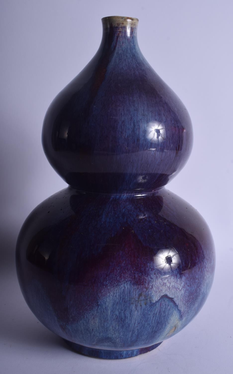A CHINESE QING DYNASTY DOUBLE GOURD FLAMBE GLAZED VASE Qianlong/Jiaqing, of lovely mottled purple tones. 33 cm x 17 cm.