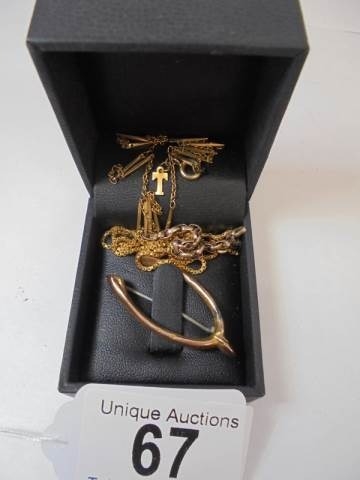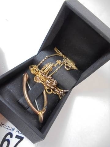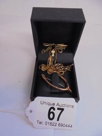 Seven grams of scrap gold and a 2.5 gram 9ct gold wishbone brooch.