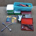 Tools including a box of vintage screwdrivers, a King Dick s...