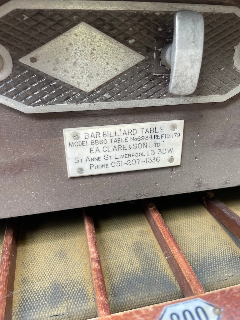 Vintage Bar Billard Table by EA Clarke & Son A/F Not all bolts and nits are present 193cm x 87cm x 86cm