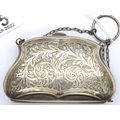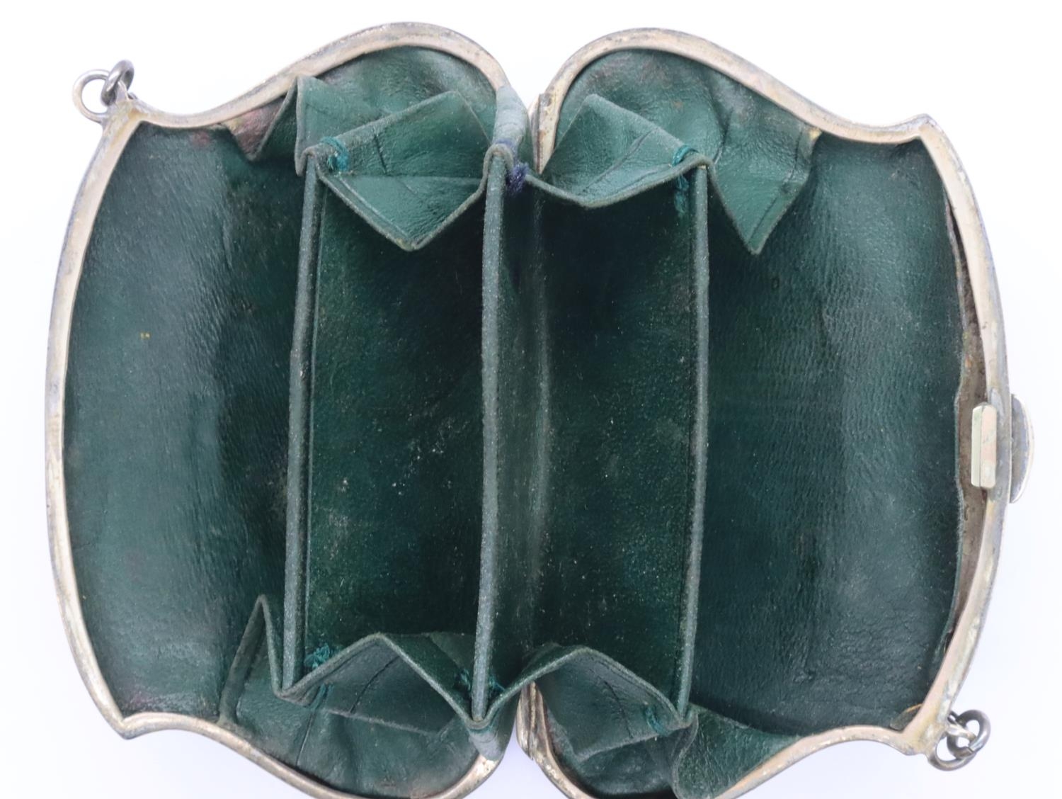 Ladies hallmarked silver purse with concertina leather interior, 52g. P&P Group 1 (£14+VAT for the first lot and £1+VAT for subsequent lots)