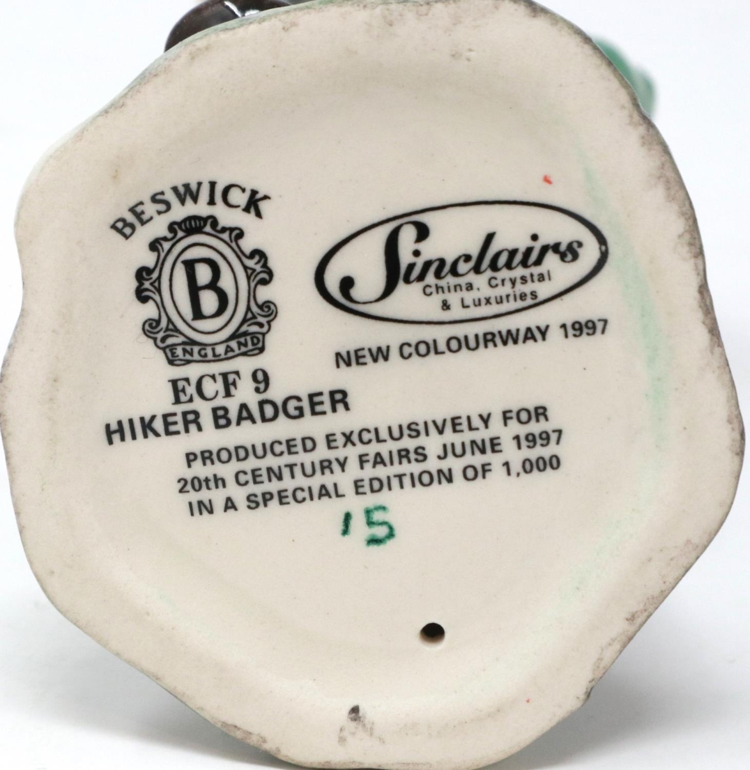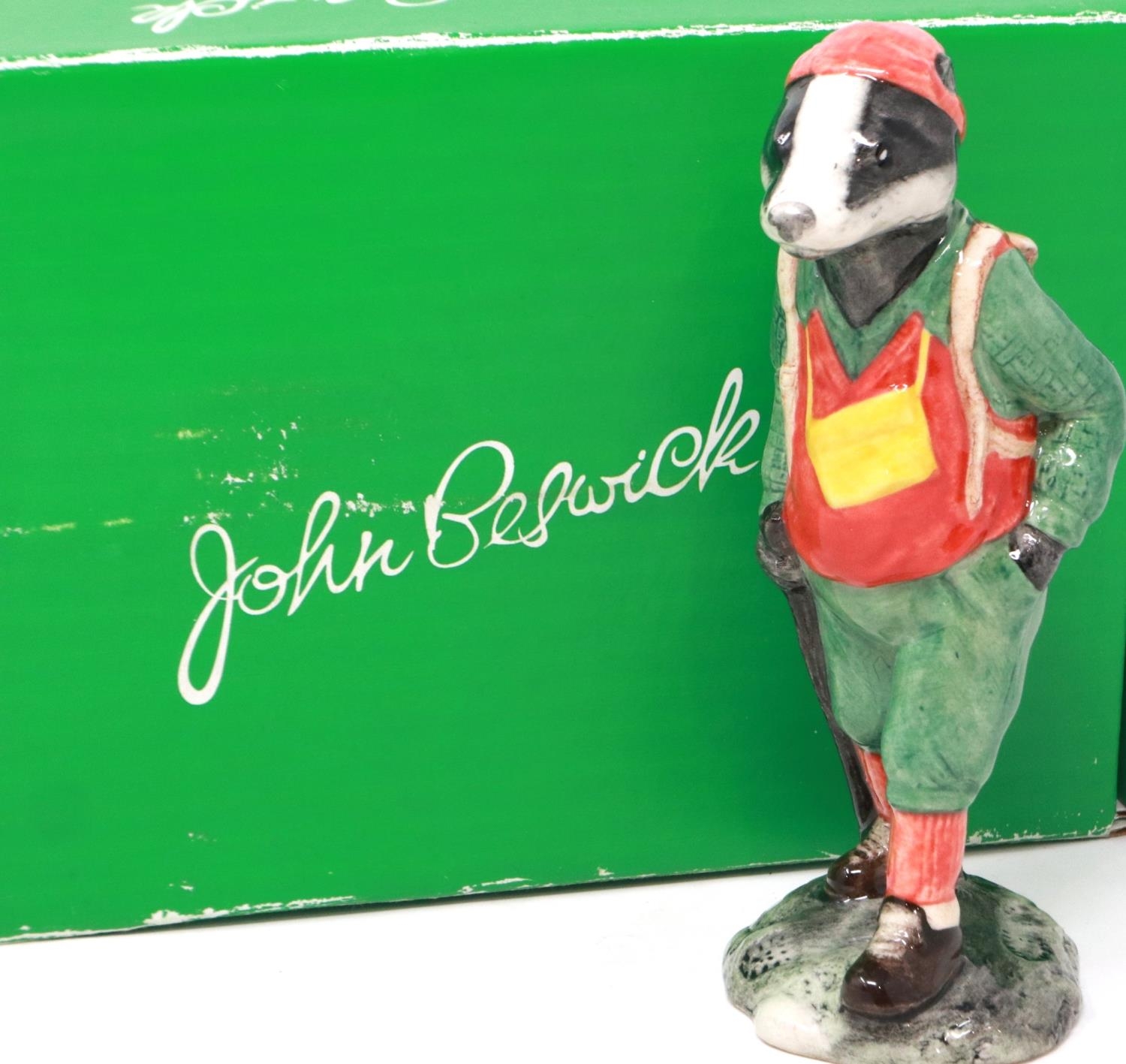 Boxed Beswick Limited Edition 15/1000 Hiker Badger, H: 13 cm. P&P Group 1 (£14+VAT for the first lot and £1+VAT for subsequent lots)