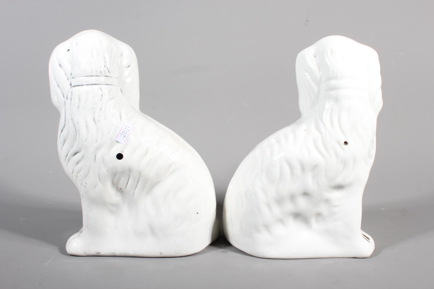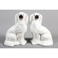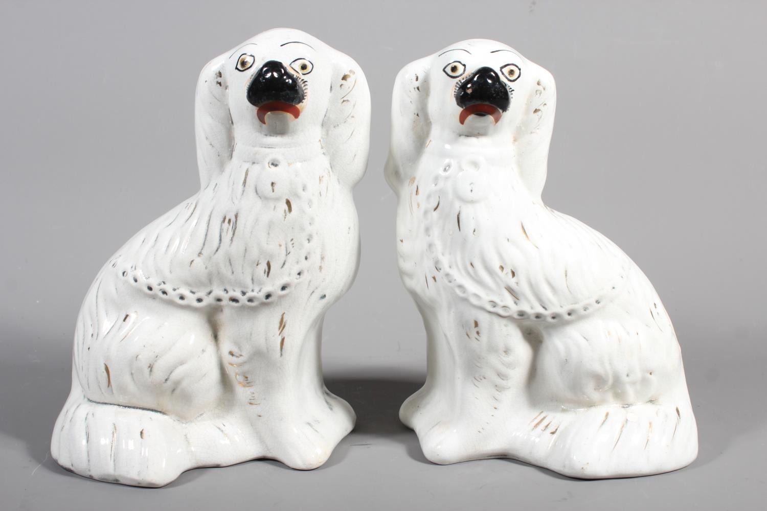 Pair of pottery mantle spaniels, 22cm tall.