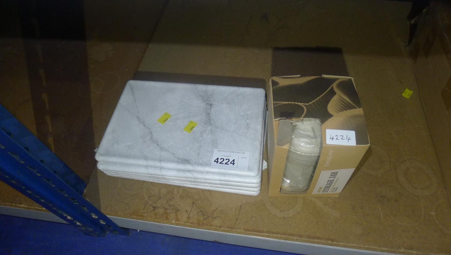 6 plastic serving trays (faux stone effect) each approx 30cm x 20cm & 1 stoneware jar