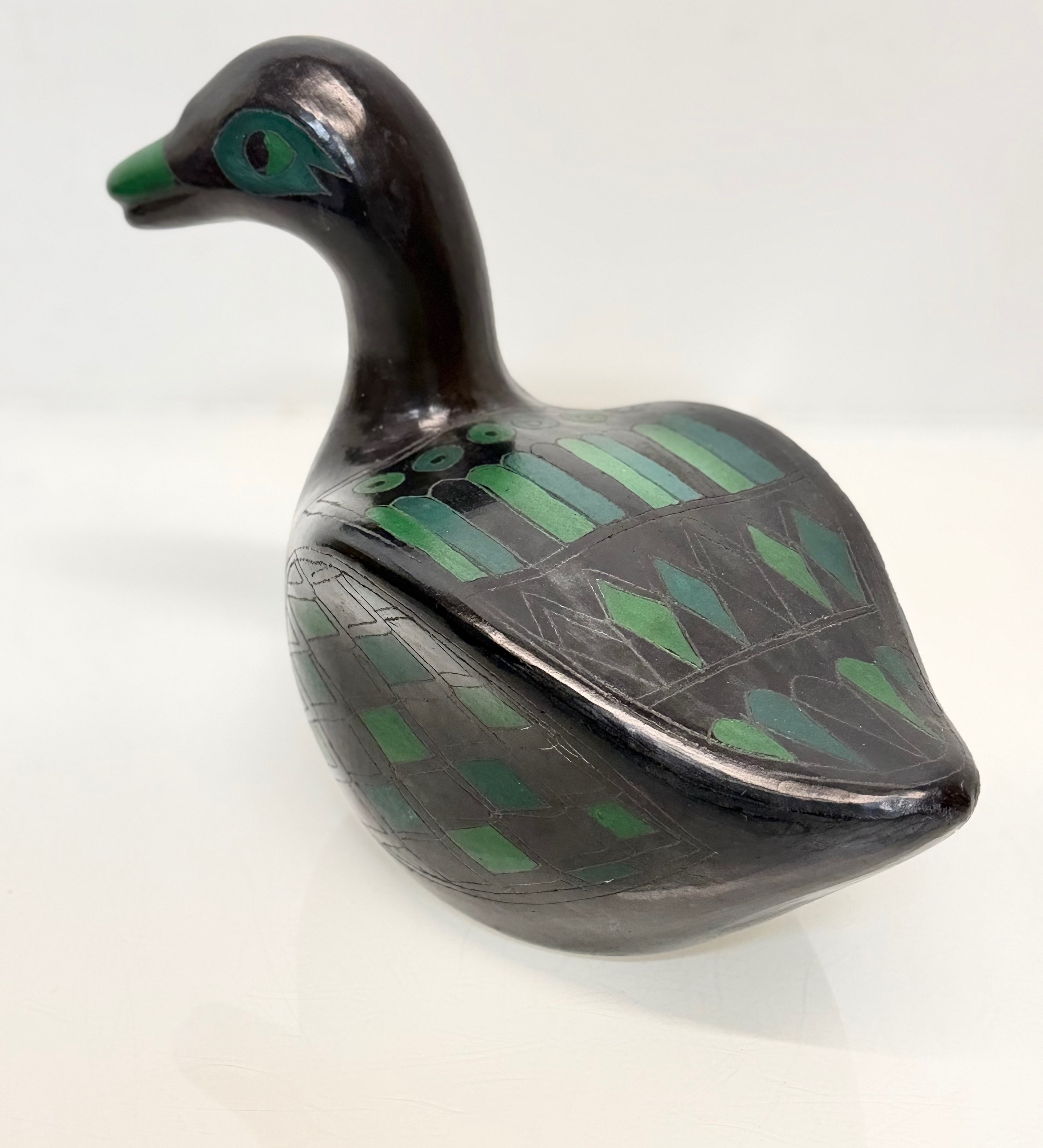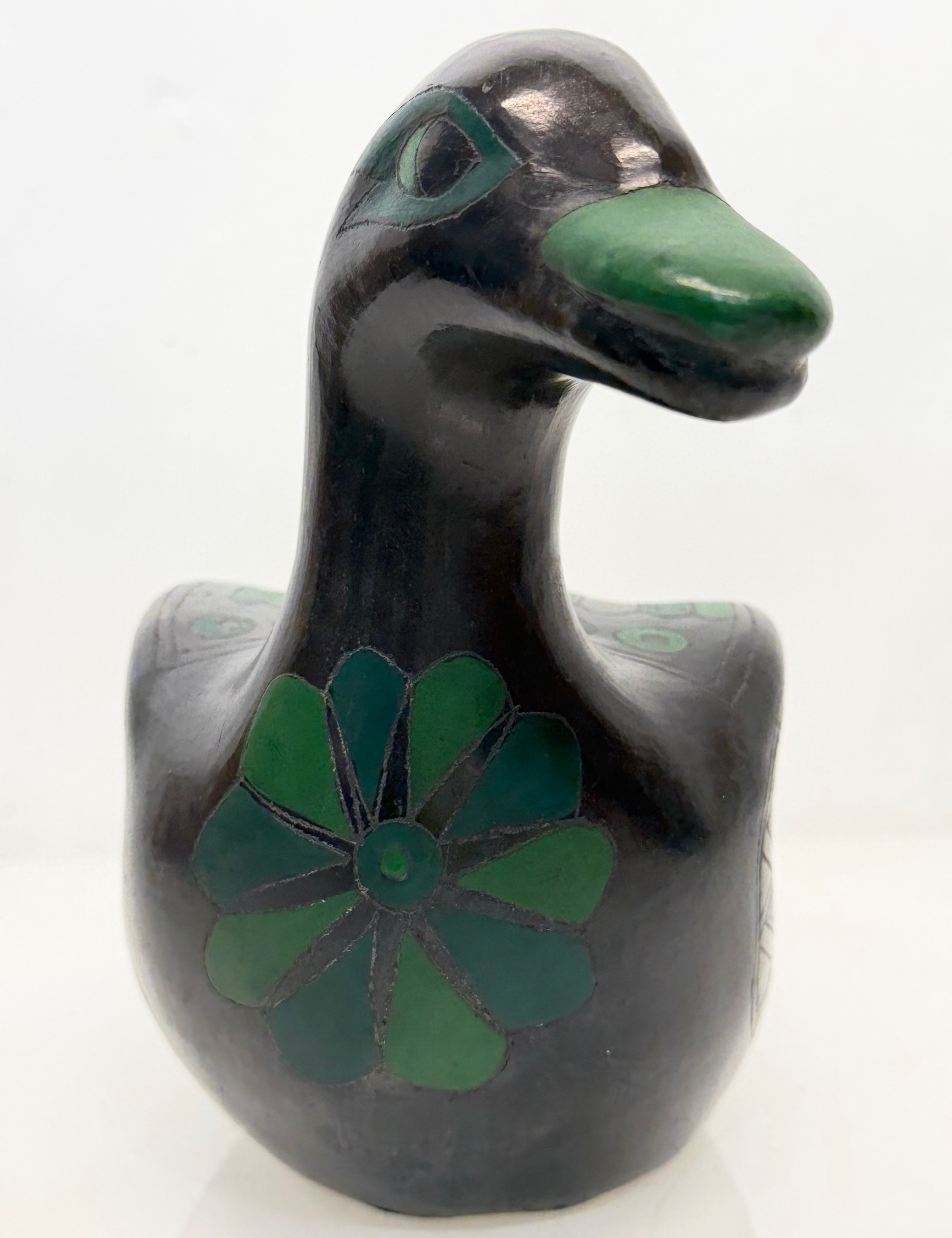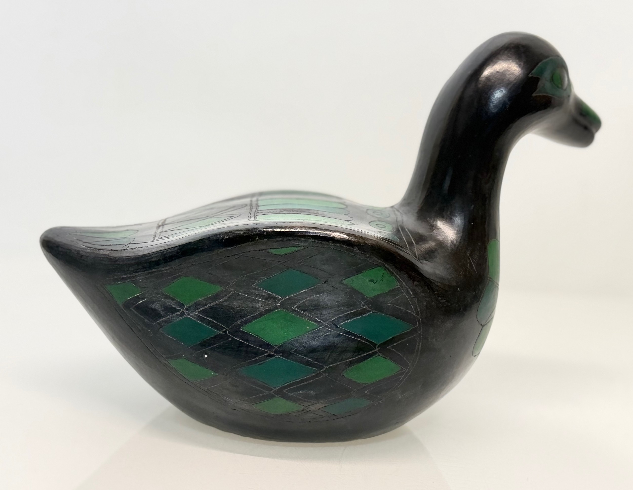 Art pottery ceramic figure of a duck, possibly of Mexican origin, 27 cm long.