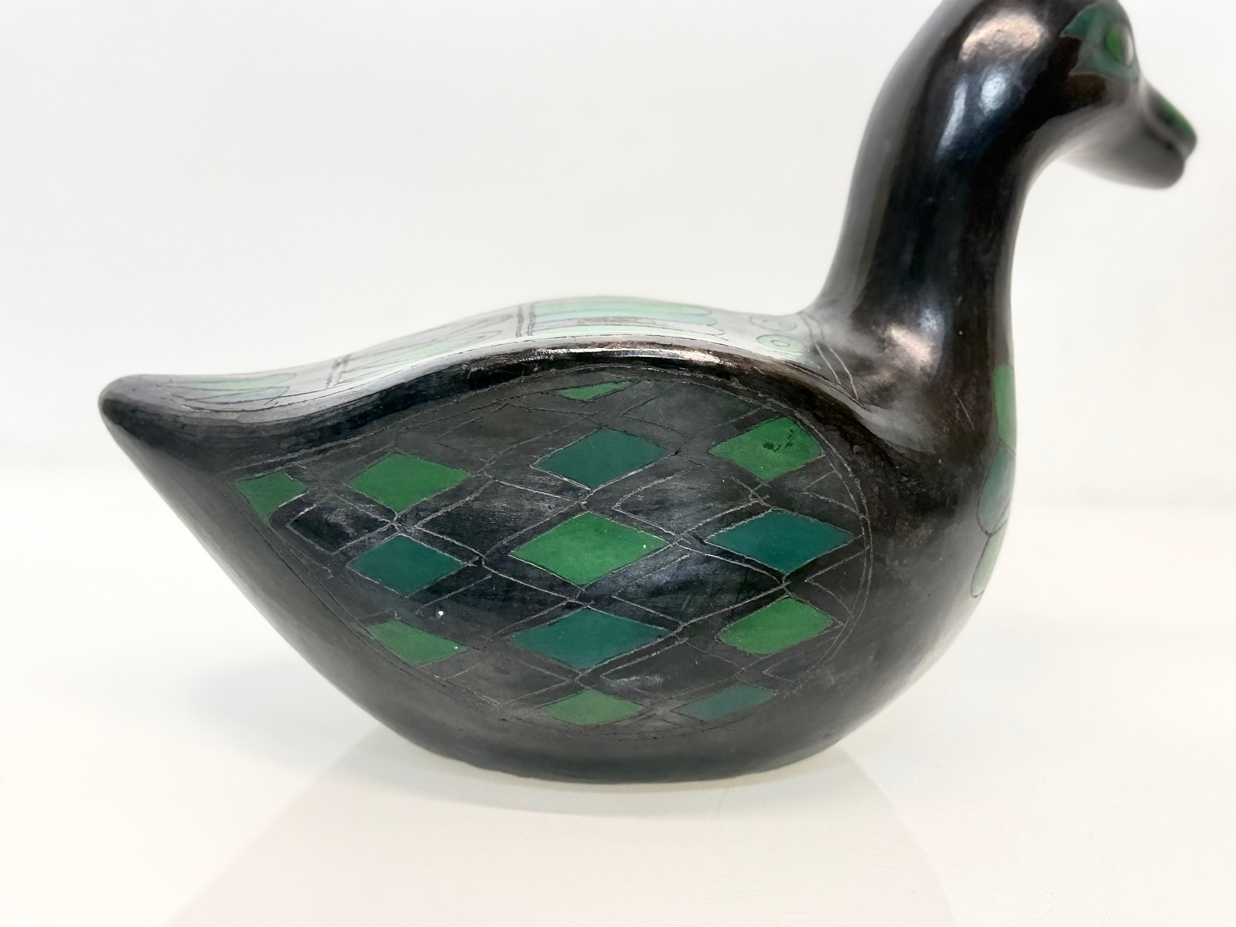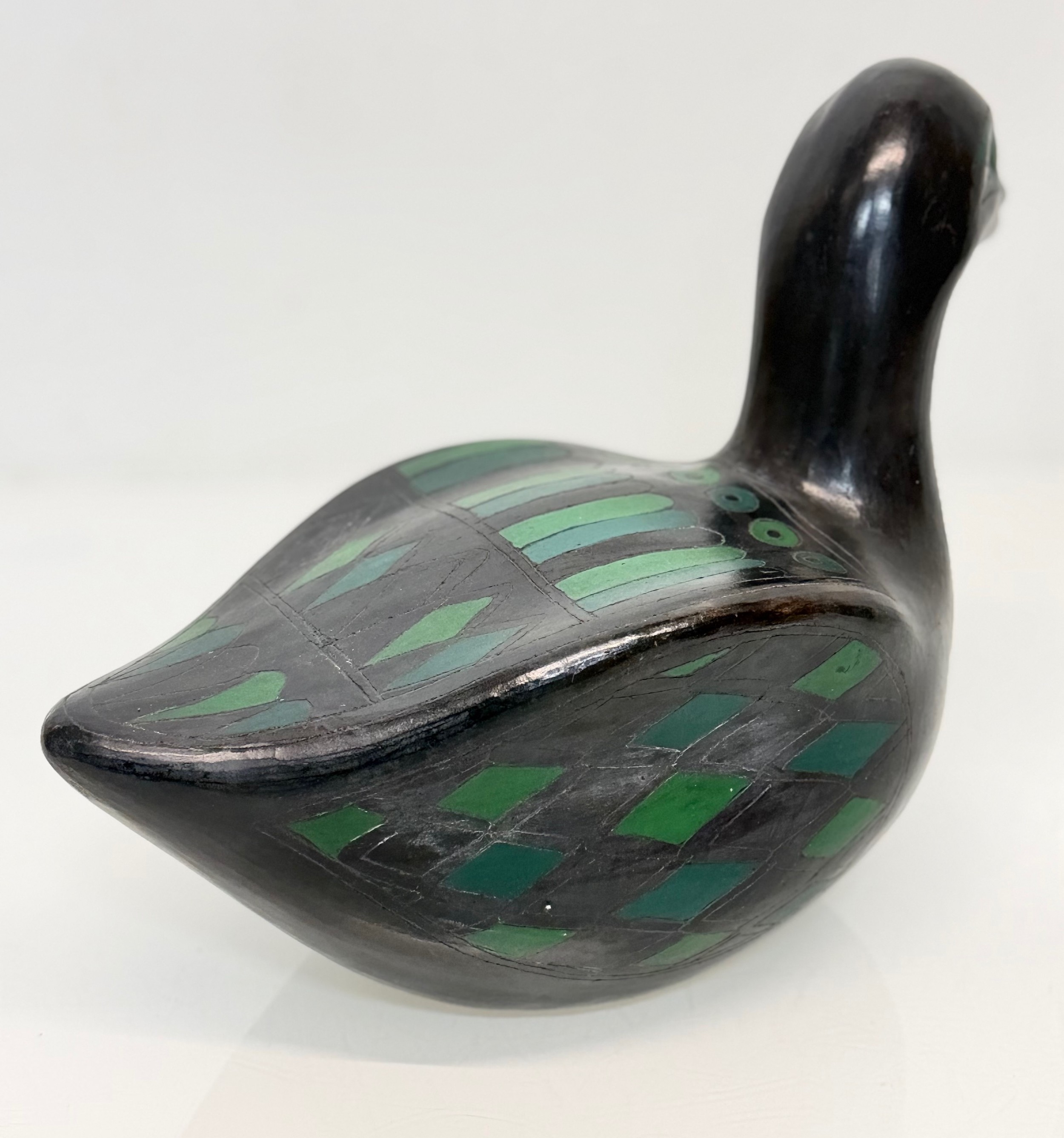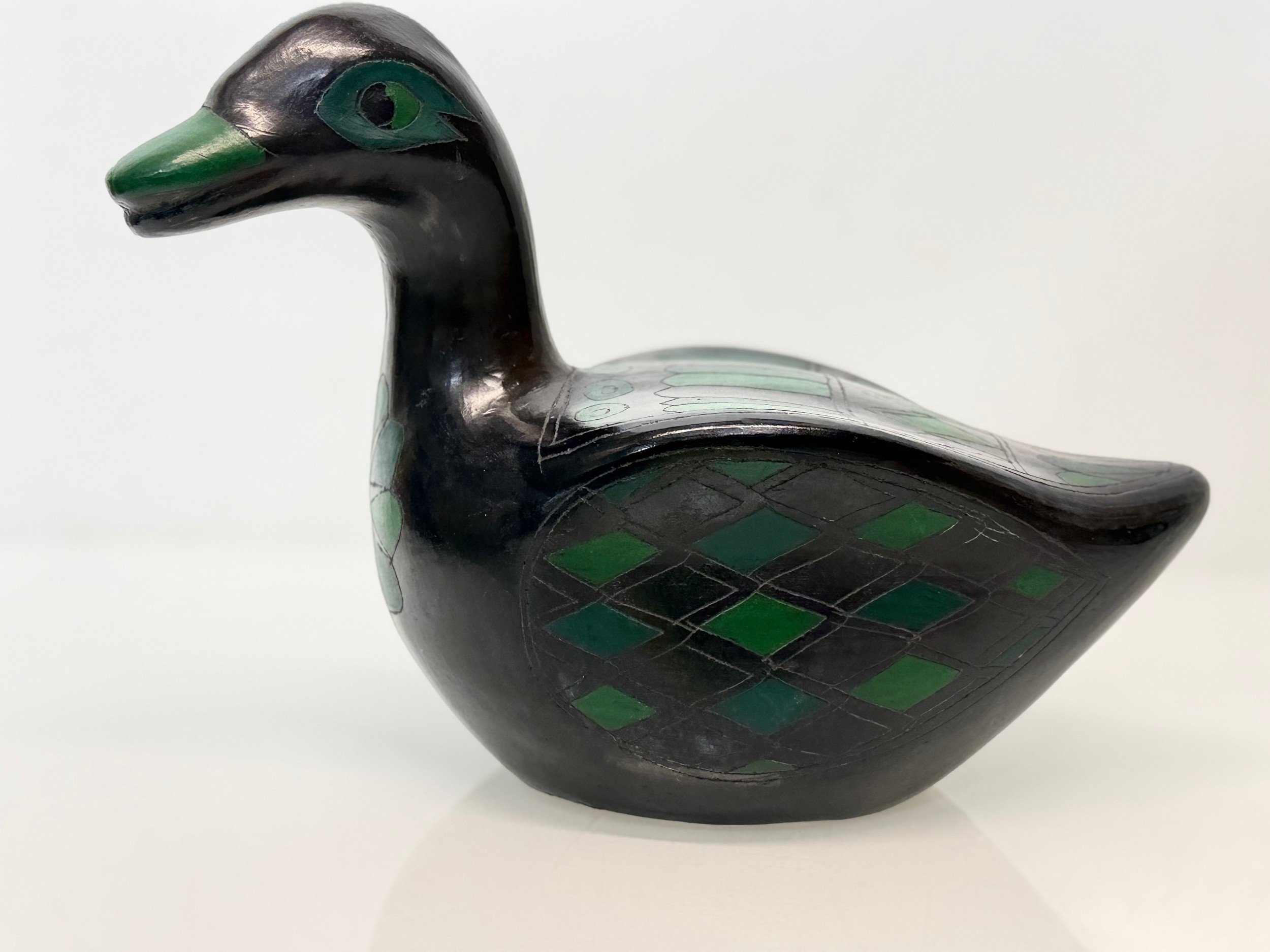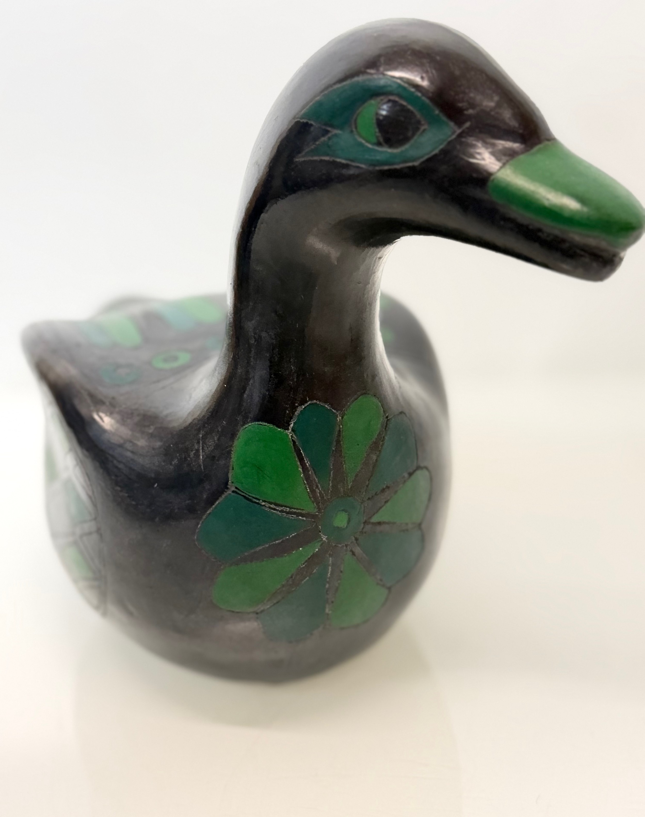 Art pottery ceramic figure of a duck, possibly of Mexican origin, 27 cm long.