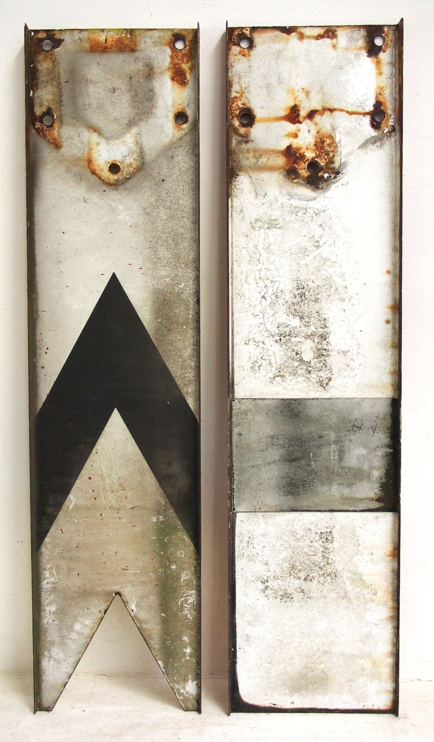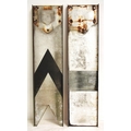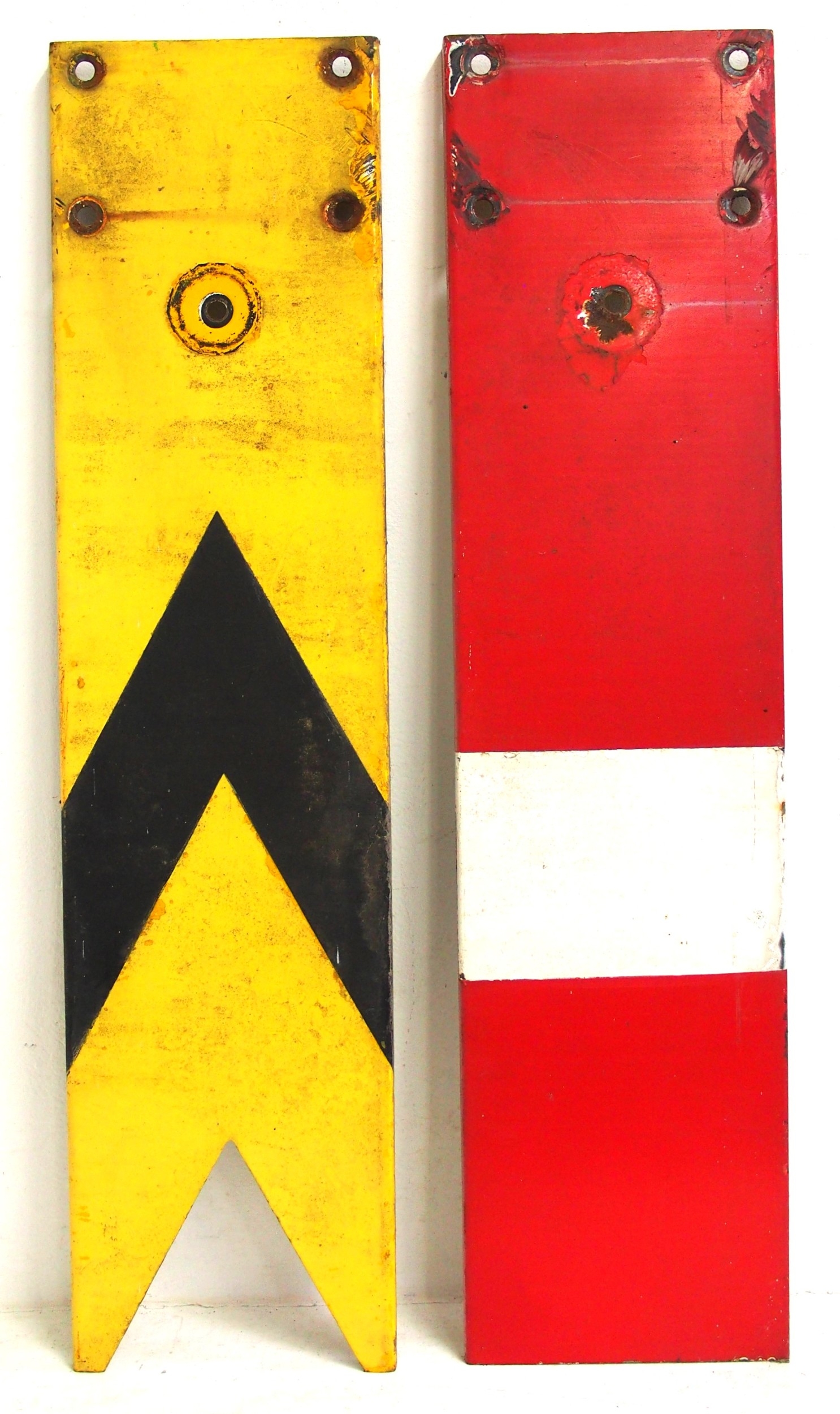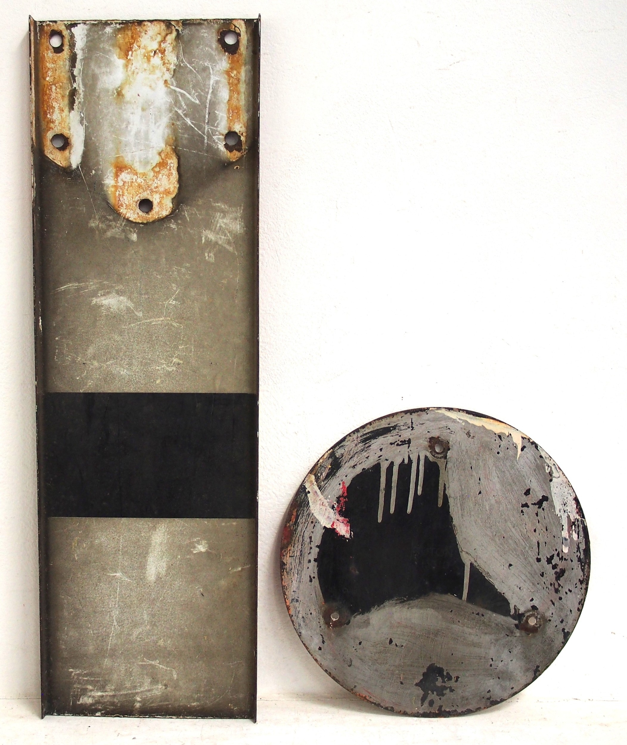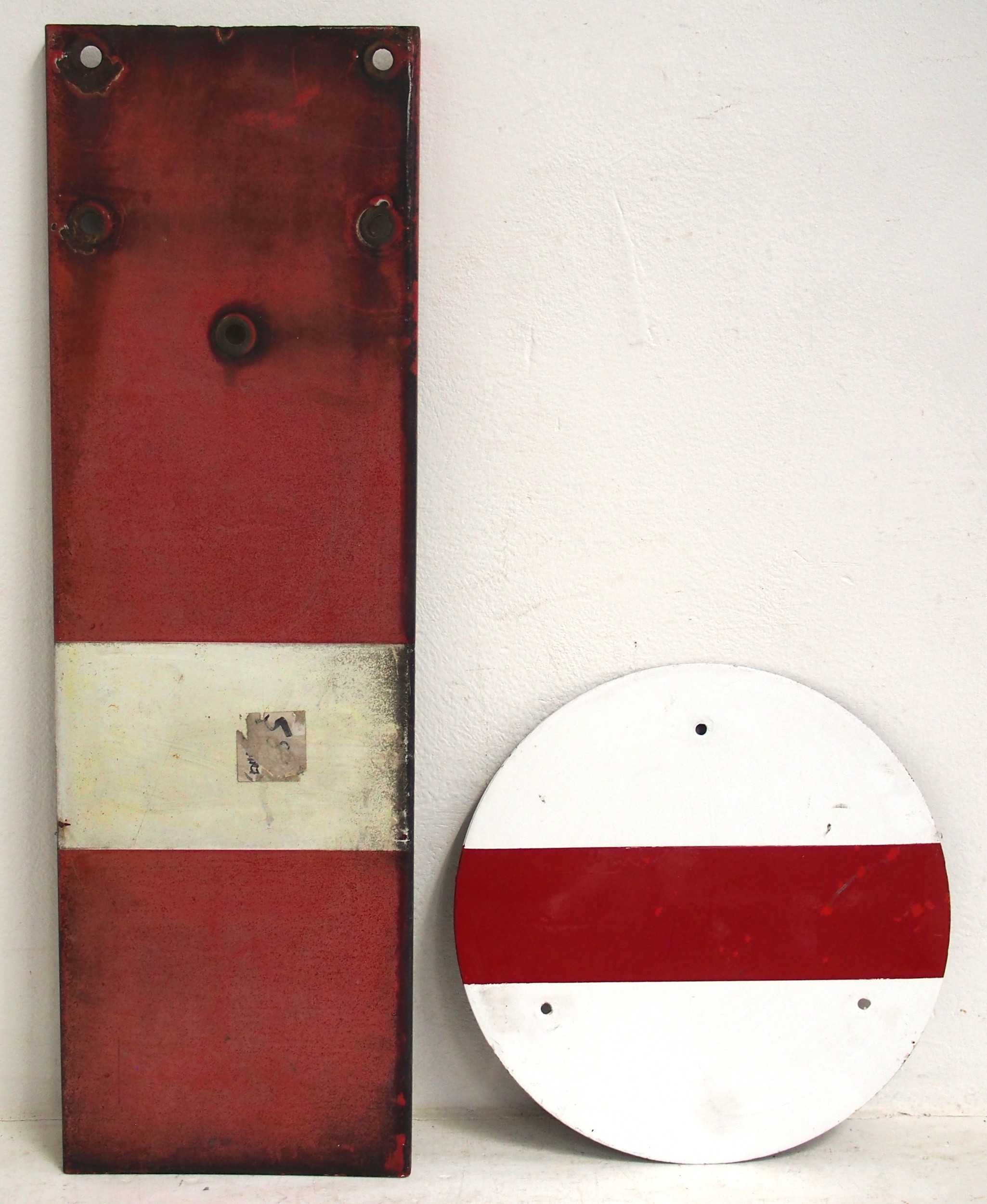 Three upper quadrant enamel signal blades two @ 42½" 1 at 33" & a ground disc face plate. (4) (WBCK) (Dispatch by Mailboxes/Collect from Banbury Depot)