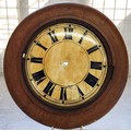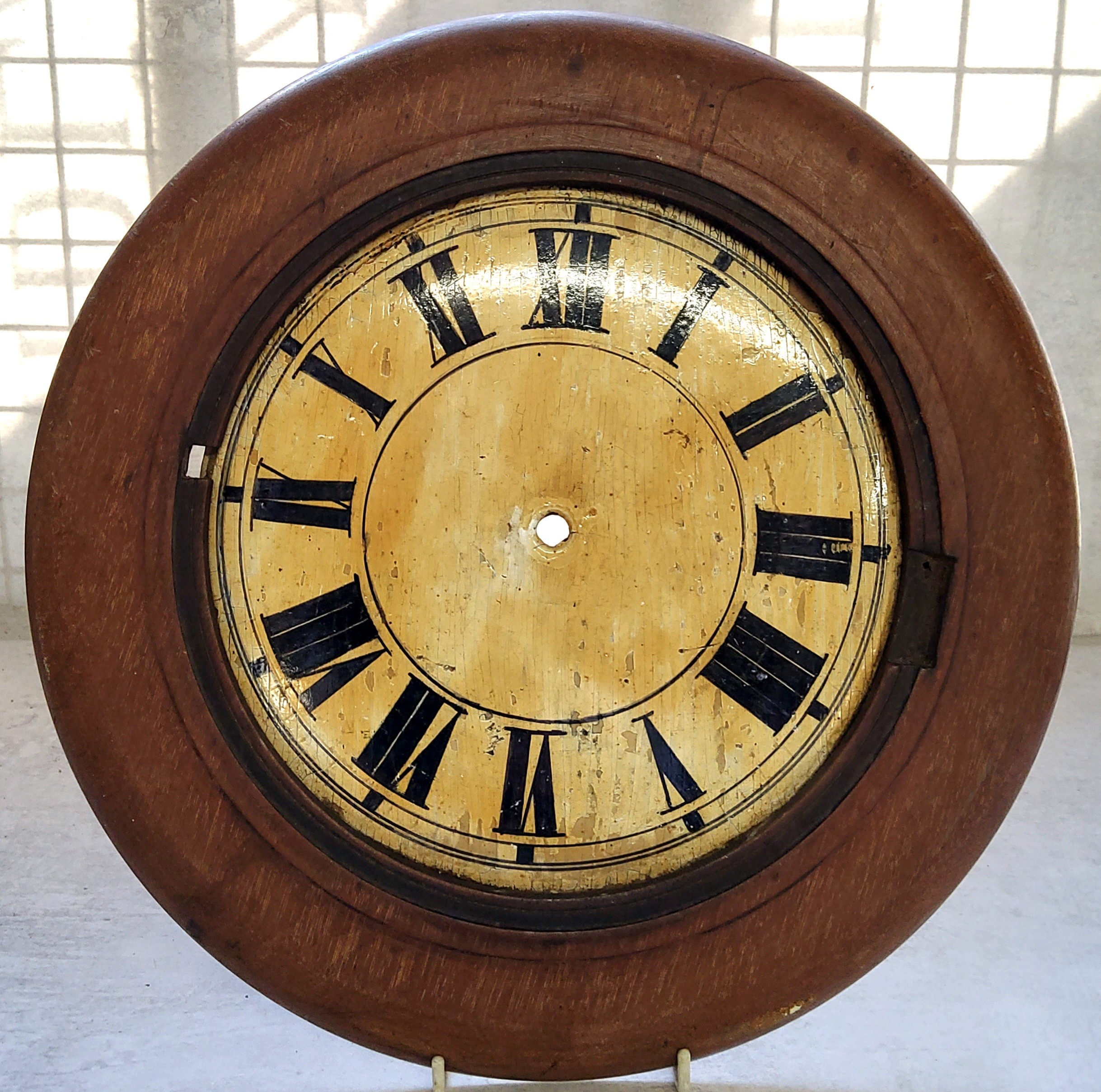An early 20th century folkart wooden clock dial with surround. 33cm diameter.