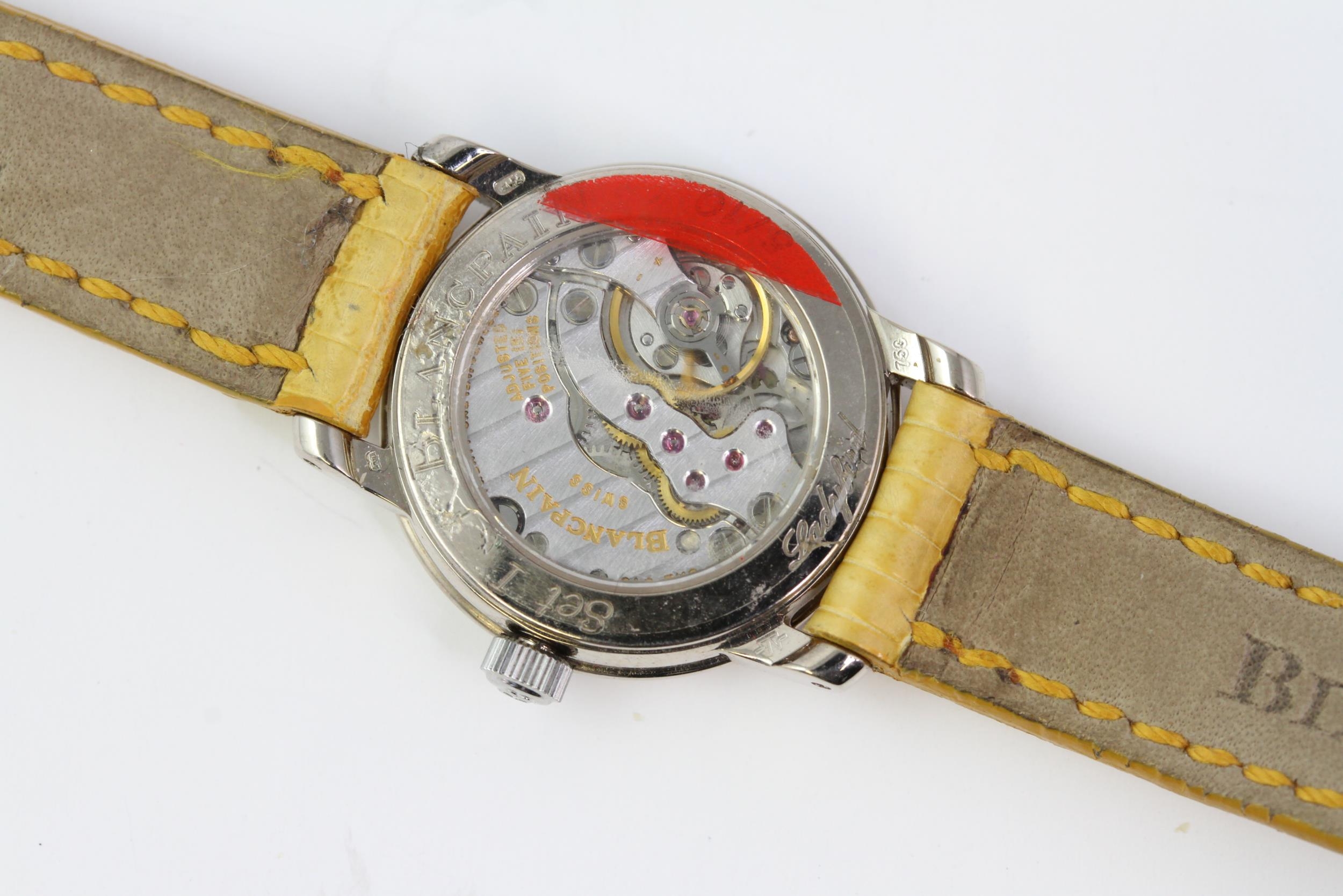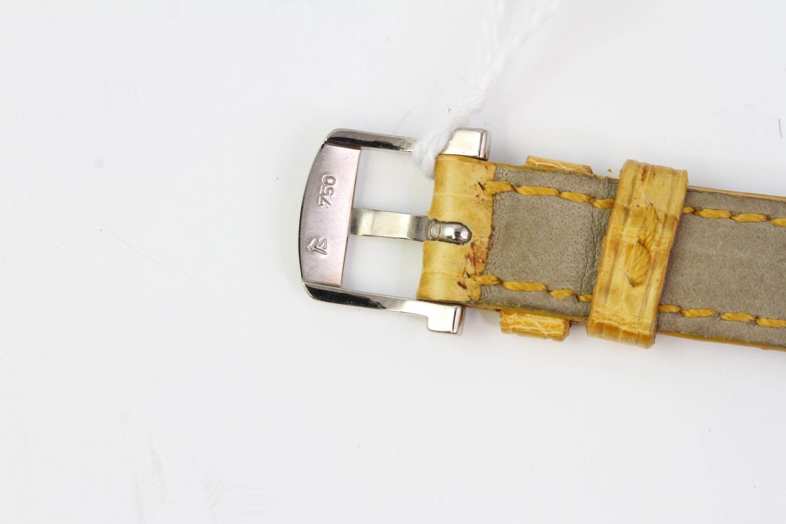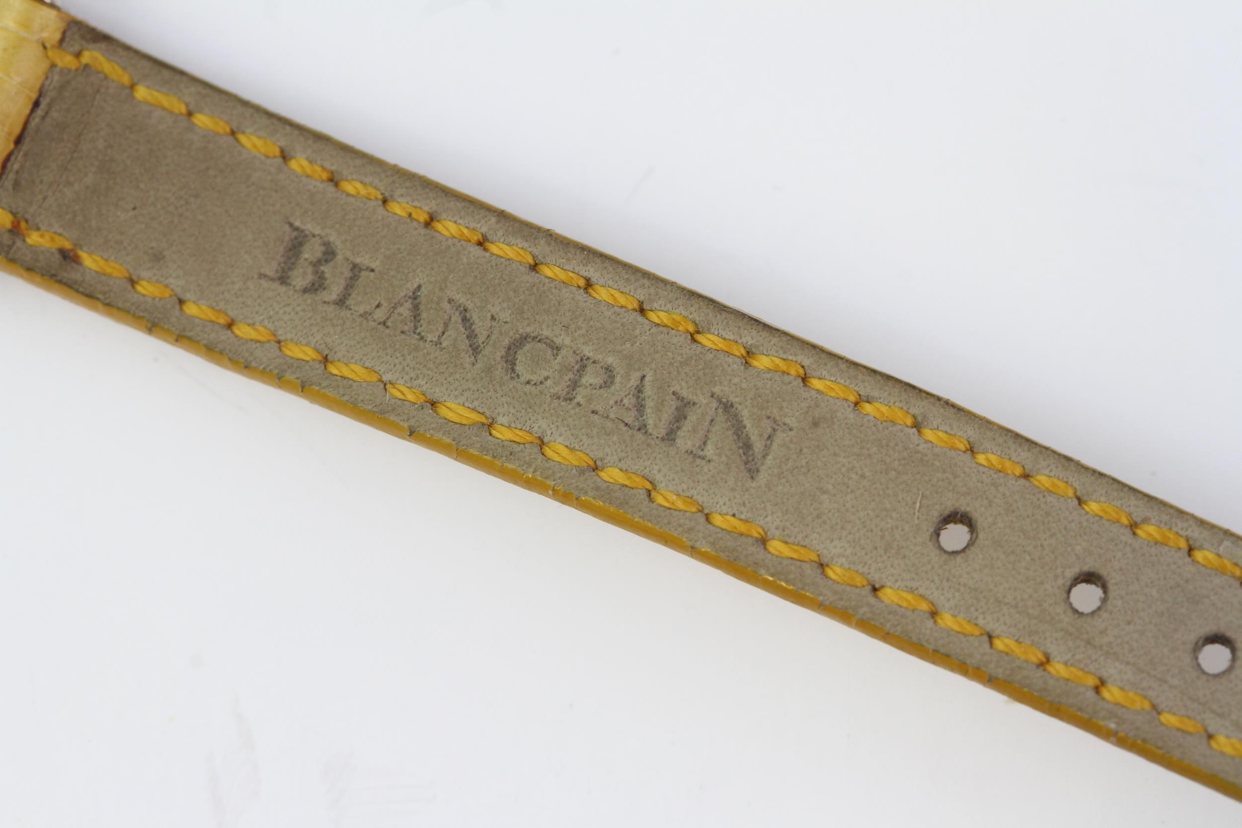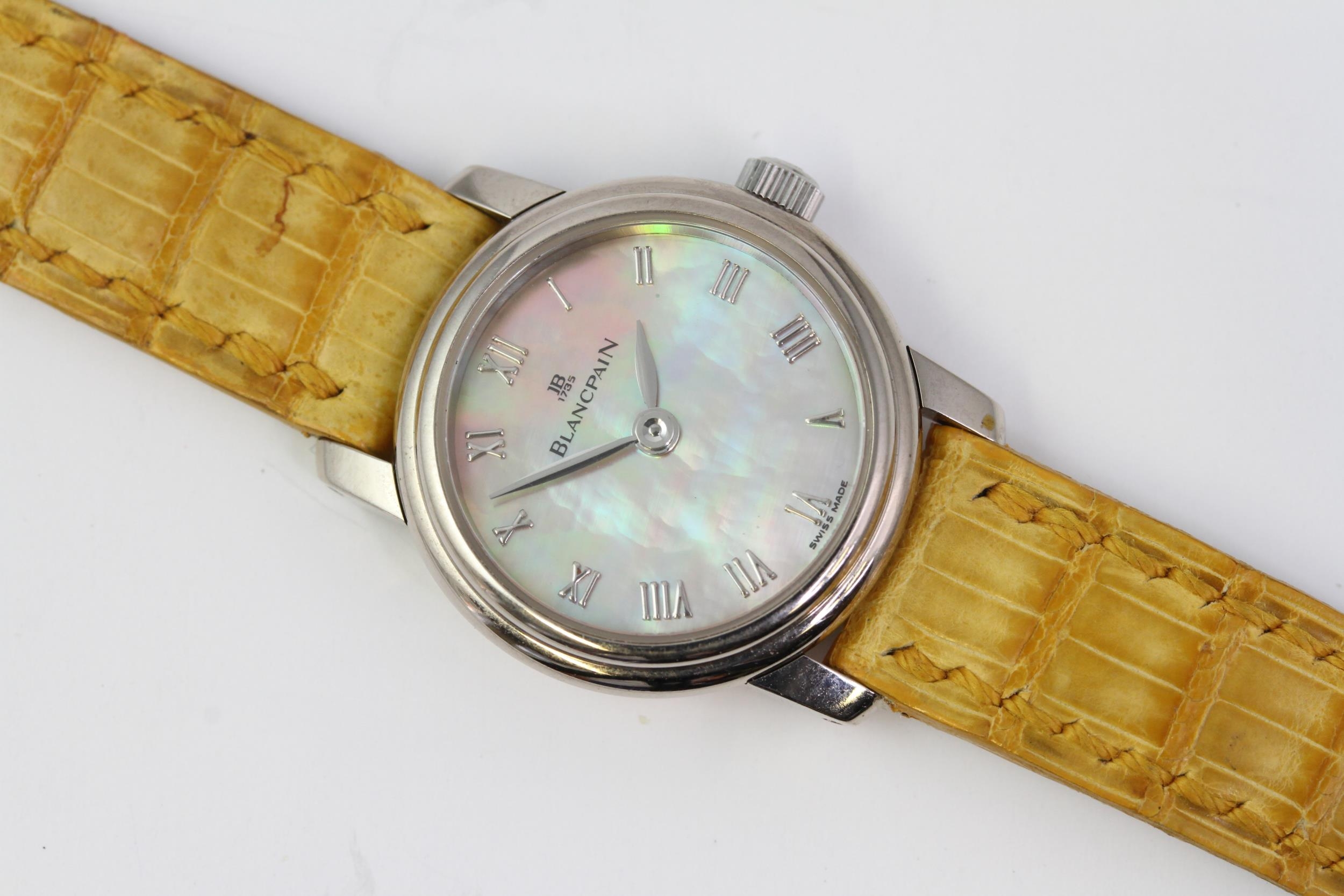 18 CT BLANCPAIN LADYBIRD WRISTWATCH, Mother of Pearl dial with roman numer hour markers. in a 18 ct gold case with snap on display case back. Manual wind movement. On a Blancpain leather strap with Blancpain 18ct buckle. Currently running.