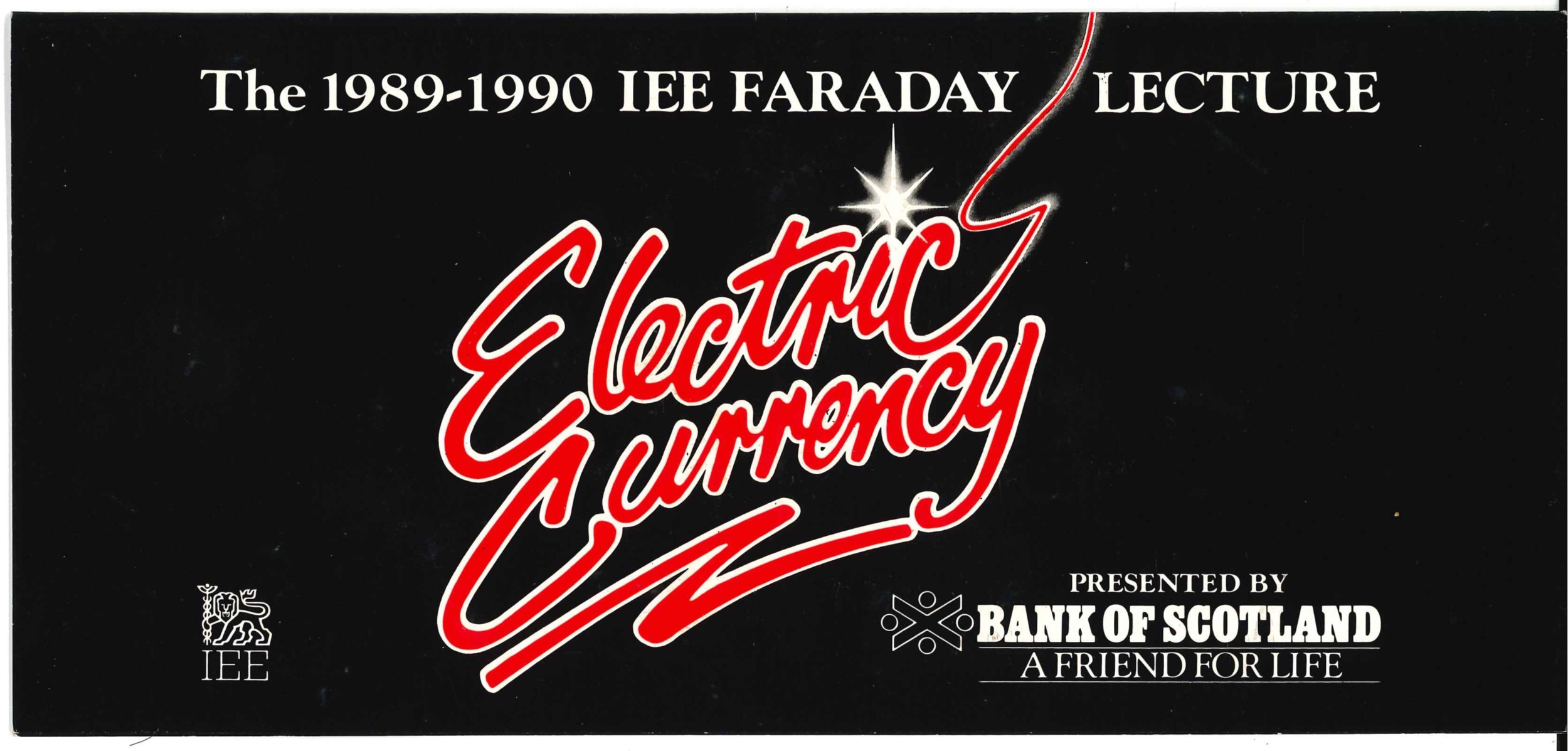 Banknotes; Scotland; Bank of Scotland; 1988 (19 Aug.) £1 laminated and held in small folder for 1989-1990 IEE Faraday Lecture.