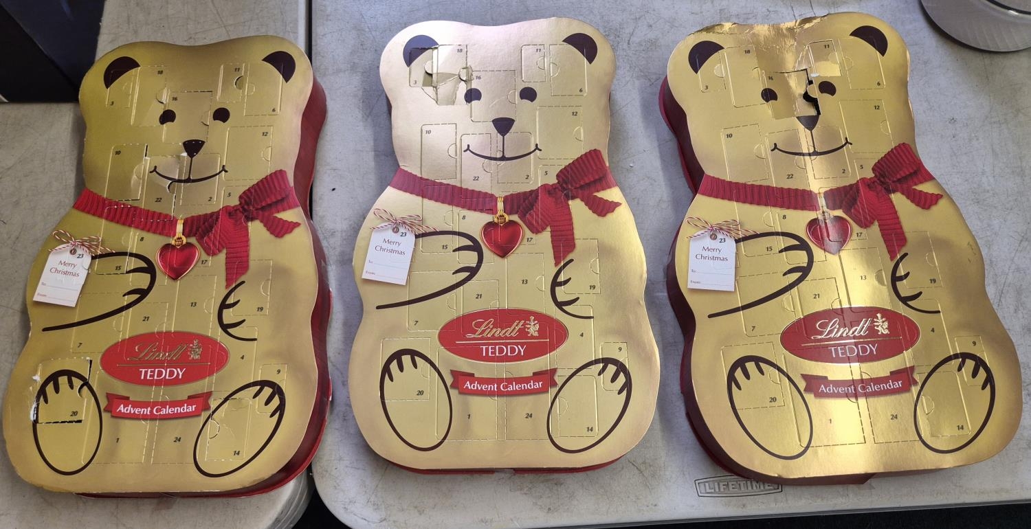 SET OF THREE LINDT TEDDY BEAR ADVENT CALENDARS - ALL COMPLETE BUT SOME DOORS BEEN OPENED
