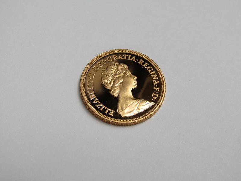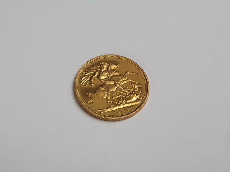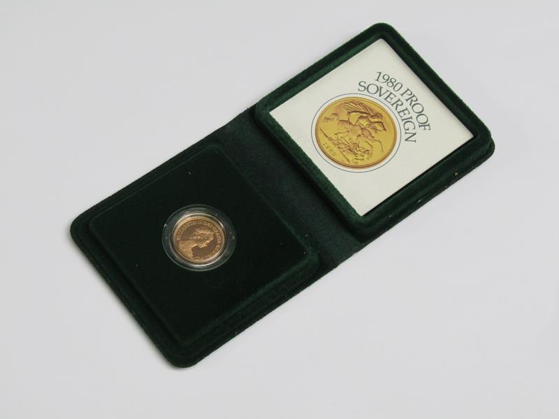 A 1980 proof gold sovereign, in box.